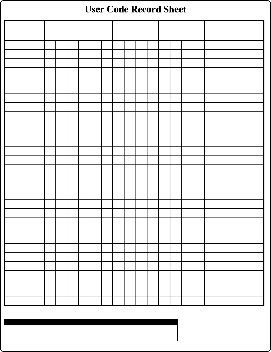 User Code Record Sheet ---------------------------------------------------------------------------26