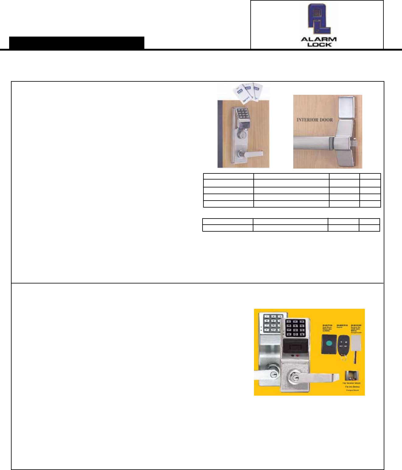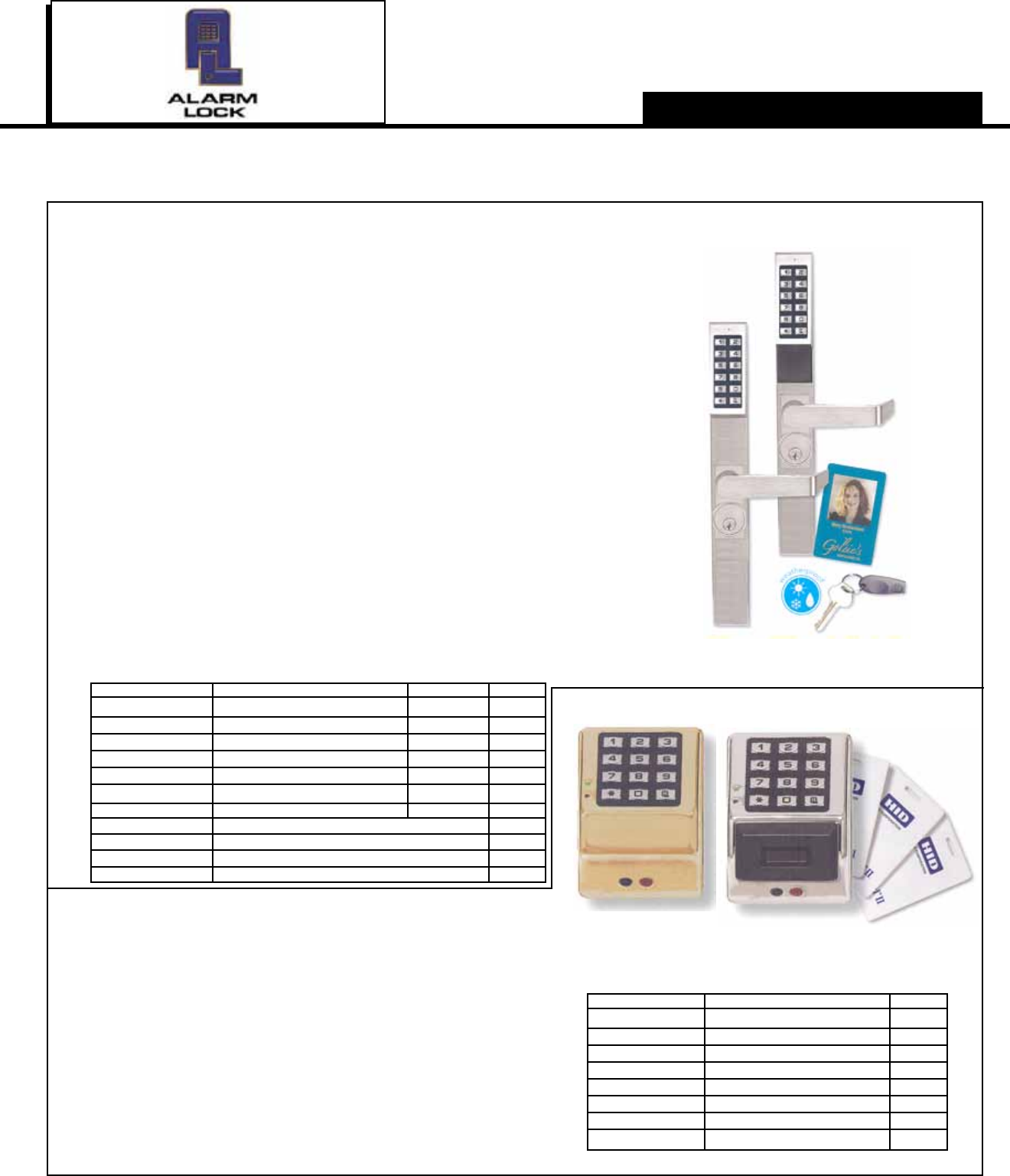 • 200 user codes including: Master, Manager, Supervisor and Basic User. Also one-time entry