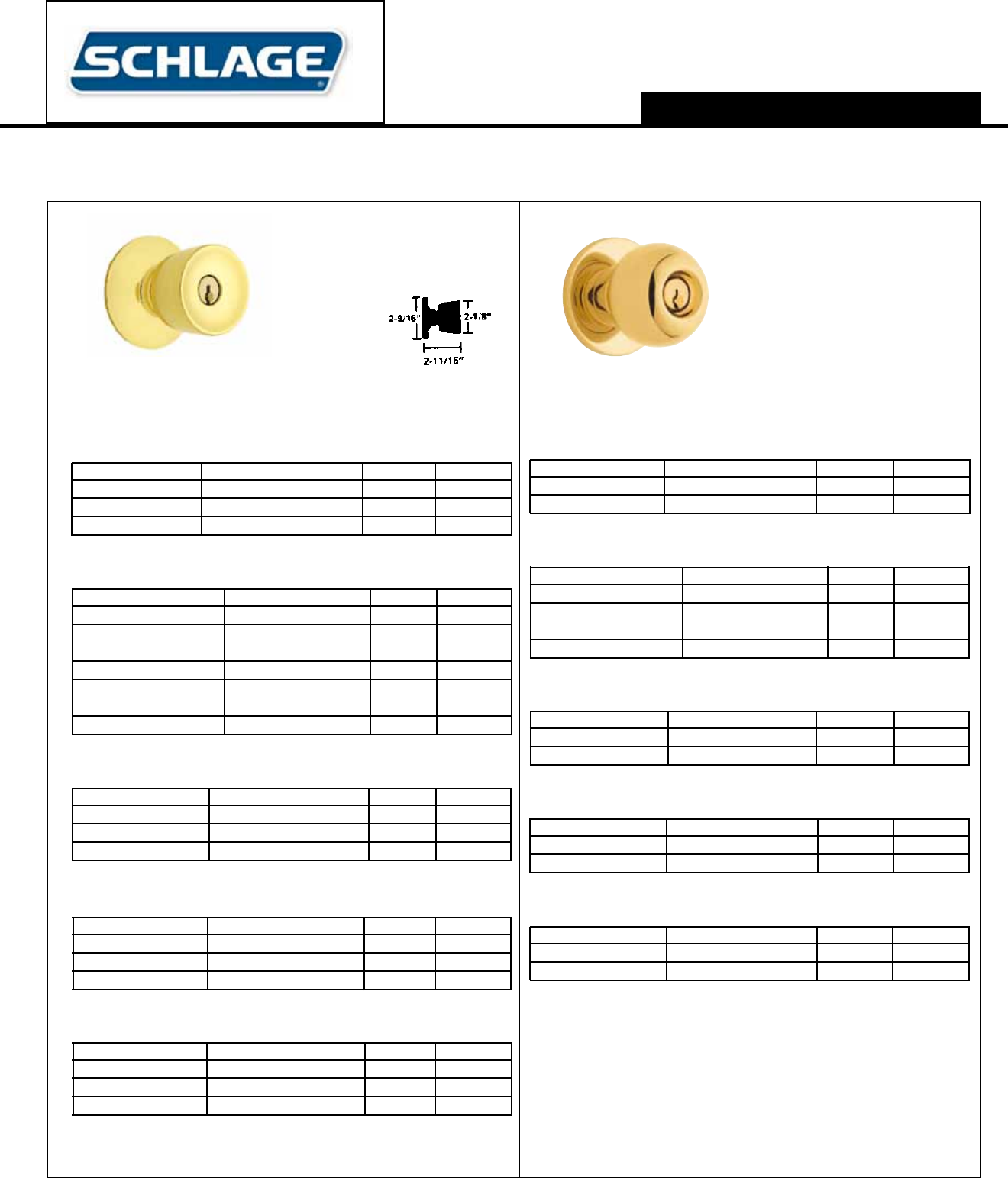 • Backset: Universal deadbolts t 2-3/8” or 2-3/4” backset
