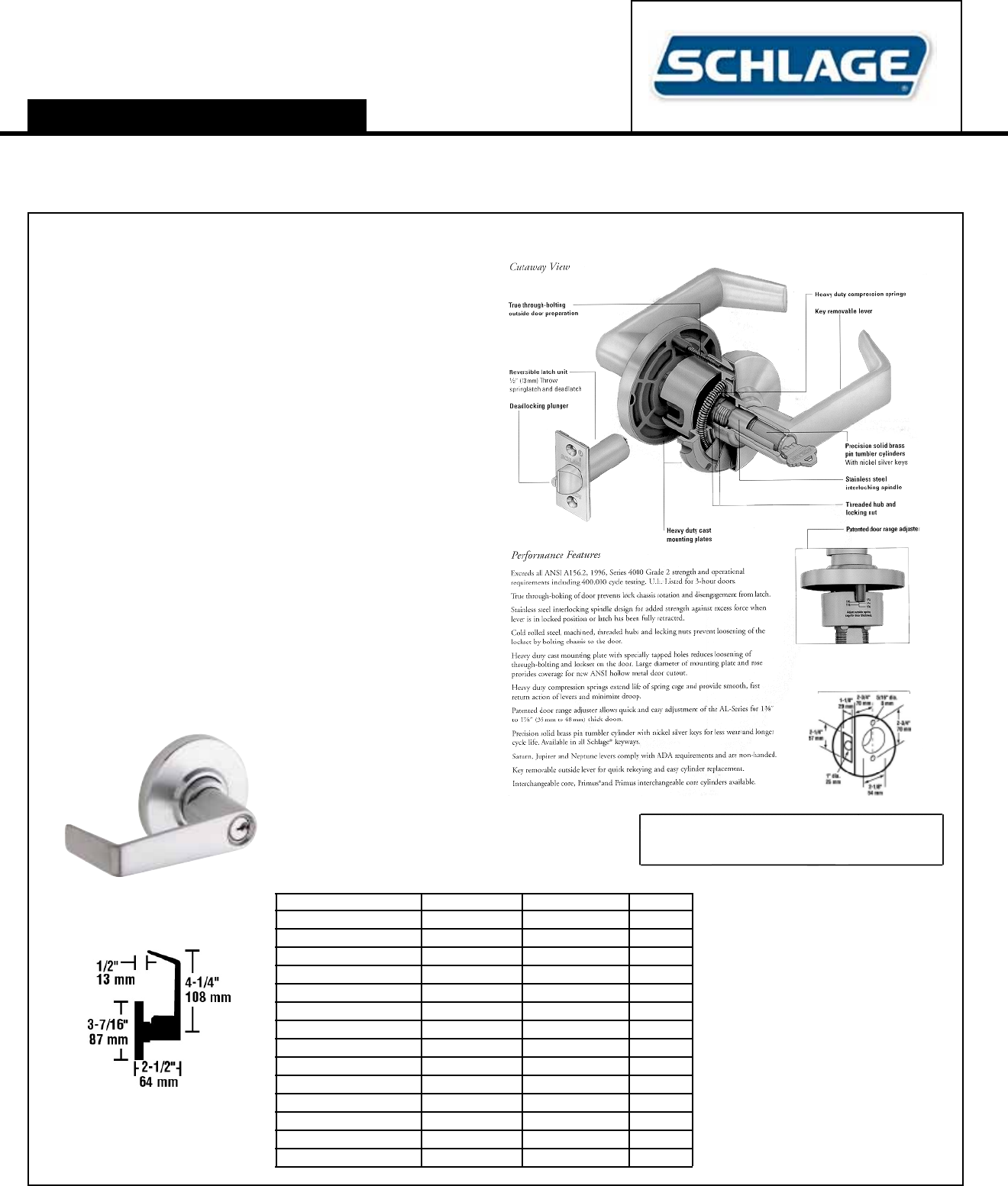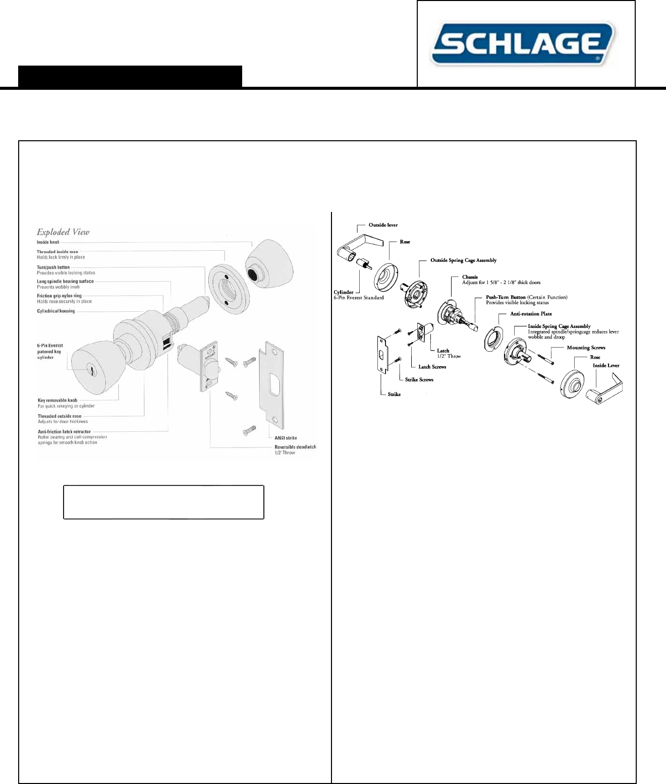 • Door thickness range: 1-3/8” to 1-3/4” standard