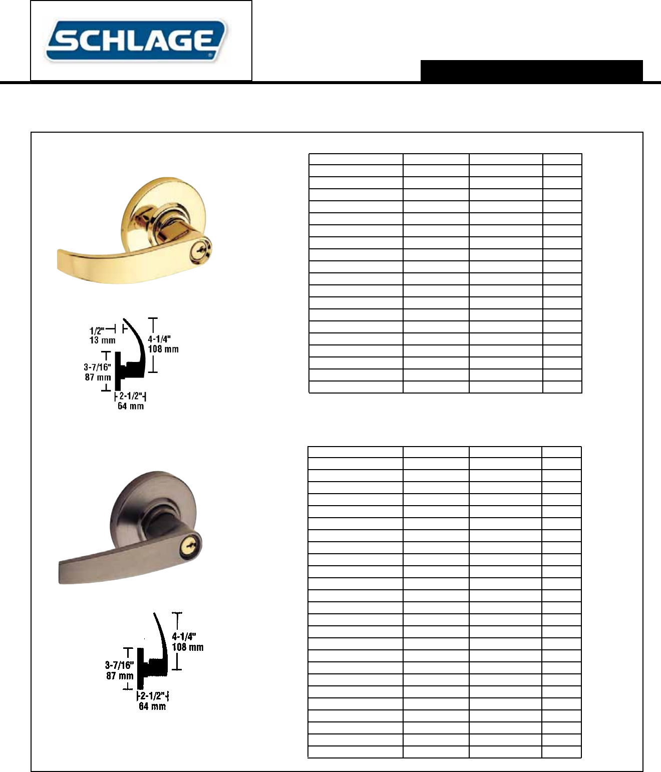 flat or beveled edge doors. Faceplates are furnished in finishes compatible with the