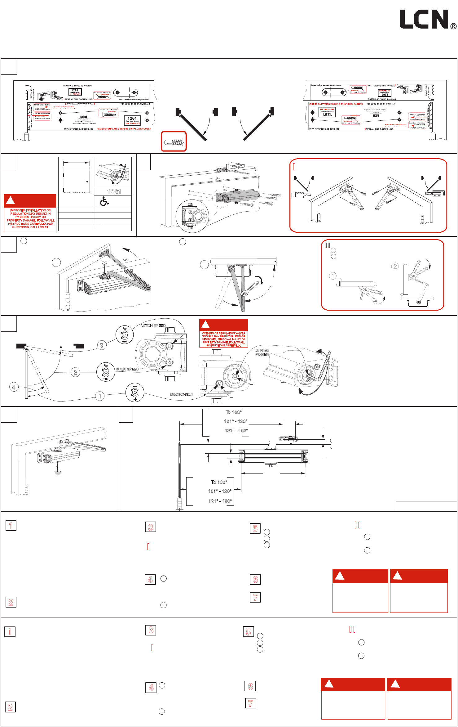 1261 Instructions et gabarit autocollant pour une installation "sur le linteau" de 100°, 120° & 180°.