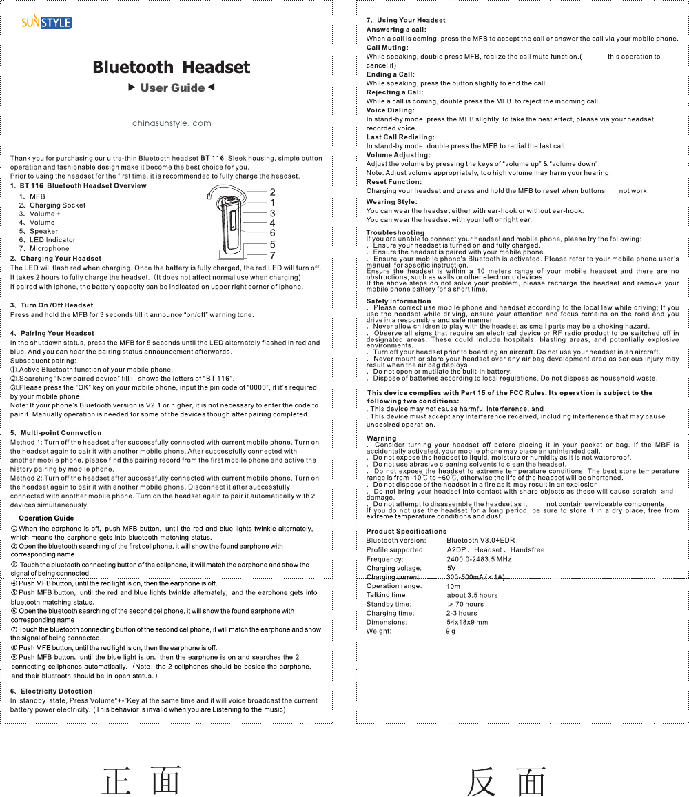 Loctek Visual Technology BT115 Bluetooth headset User Manual