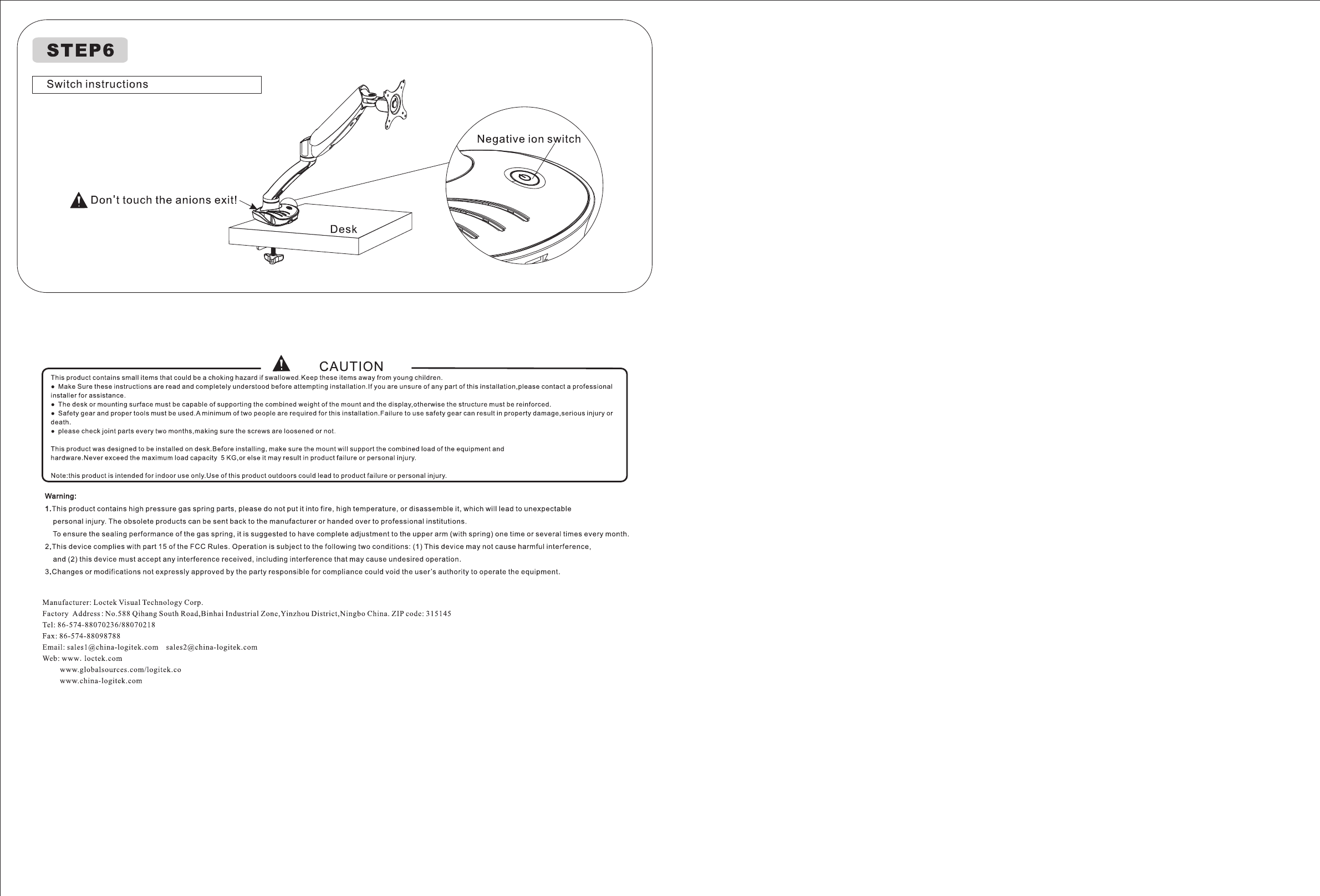 Loctek Visual Technology DLB502-N Computer Mount With Negative ion User Manual DLB502 N