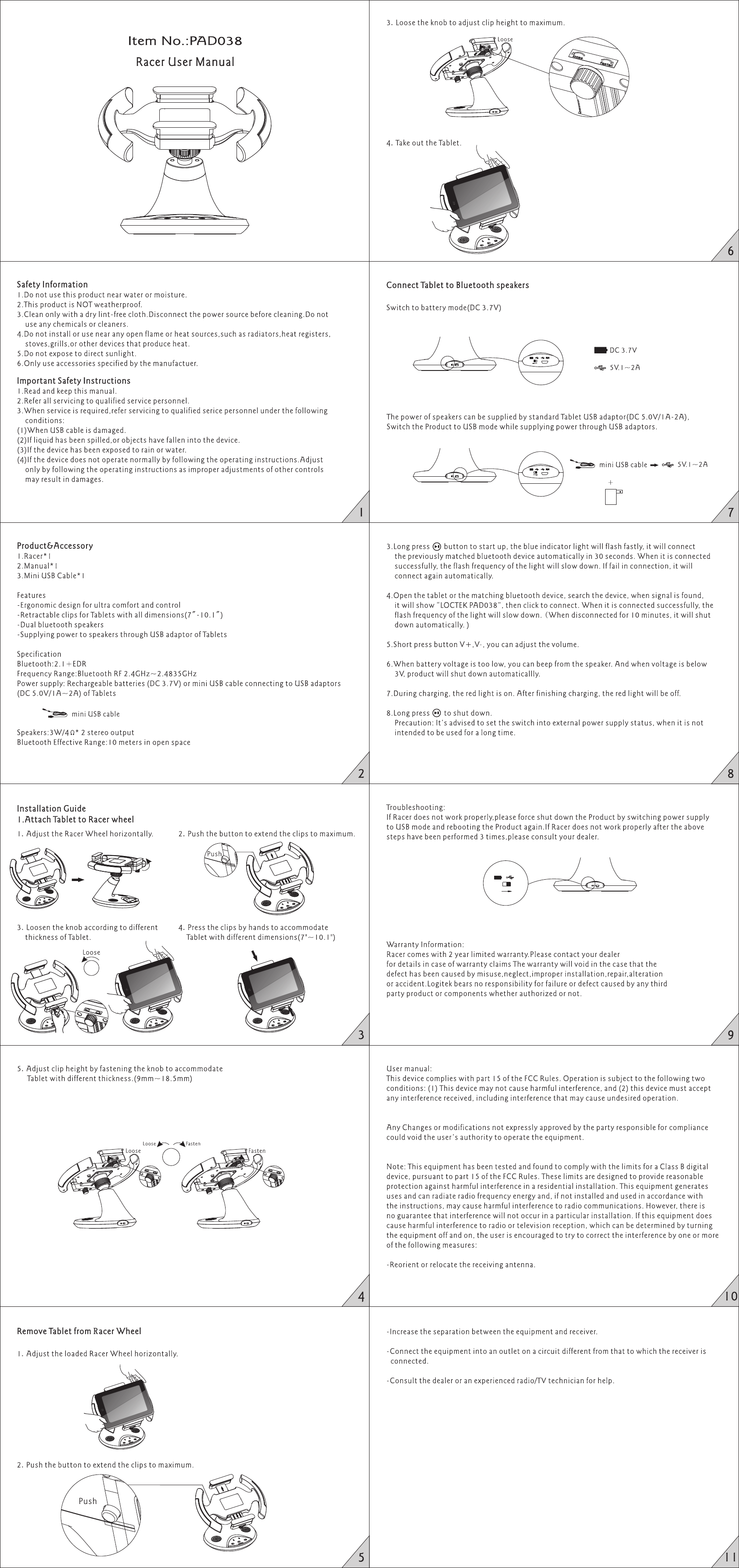 Loctek Visual Technology PAD038-G1 Bluetooth Game Controller User Manual PAD038