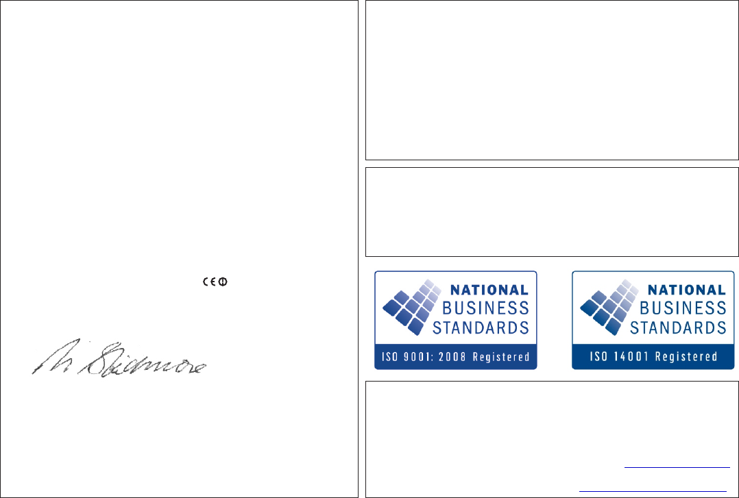 Any enquiries regarding compliance with Warranties provided herein may be addressed in writing to: