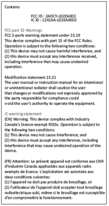 (EN) Warning: This device complies with Industry Canada’s licence-exempt RSSs. Operation is subject to