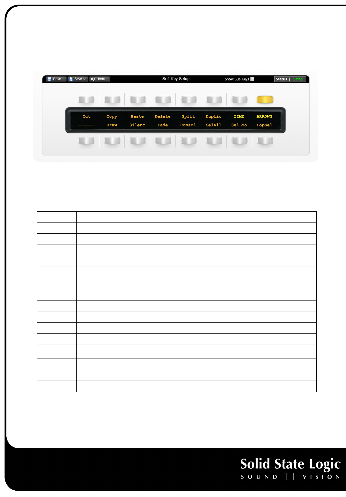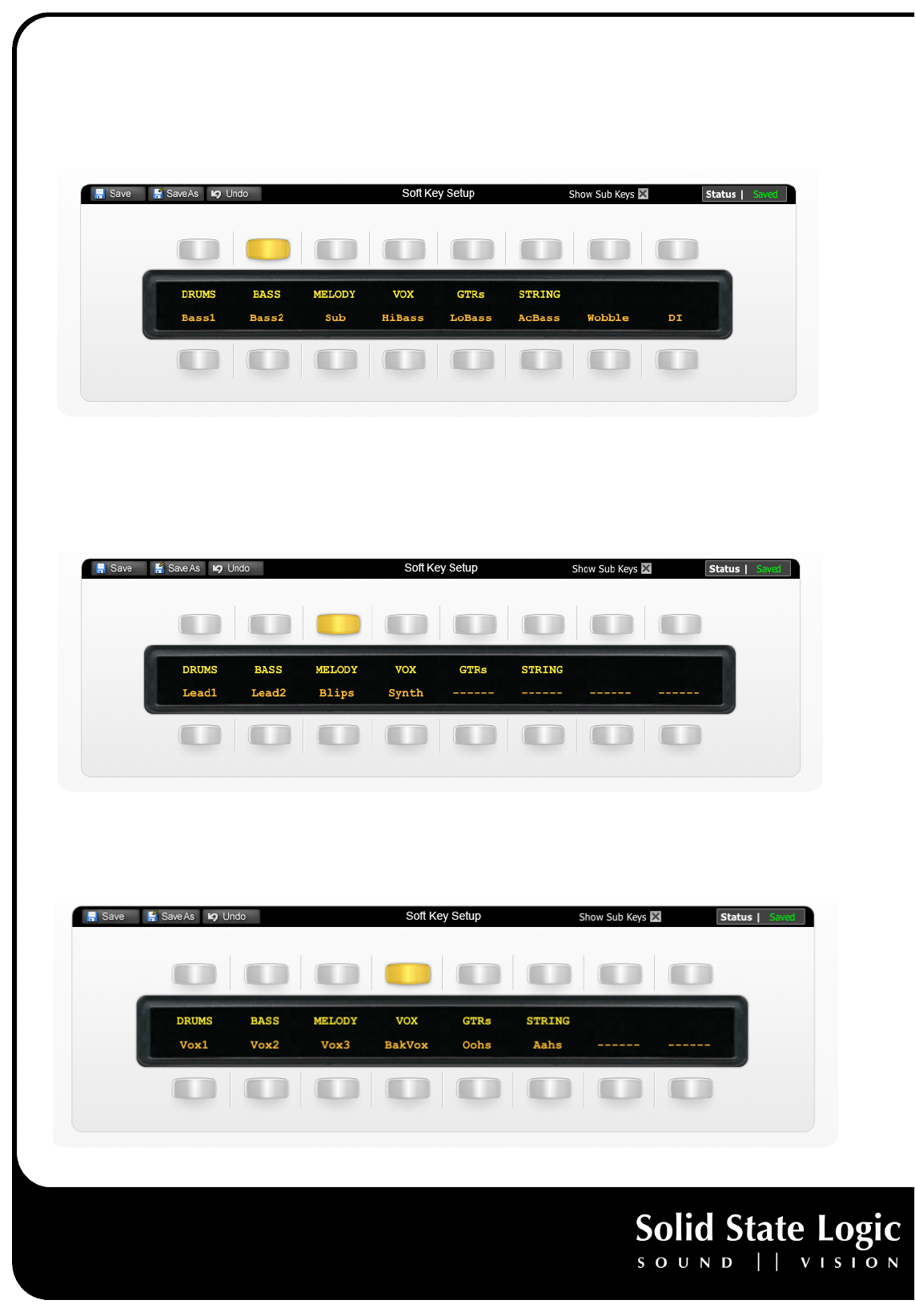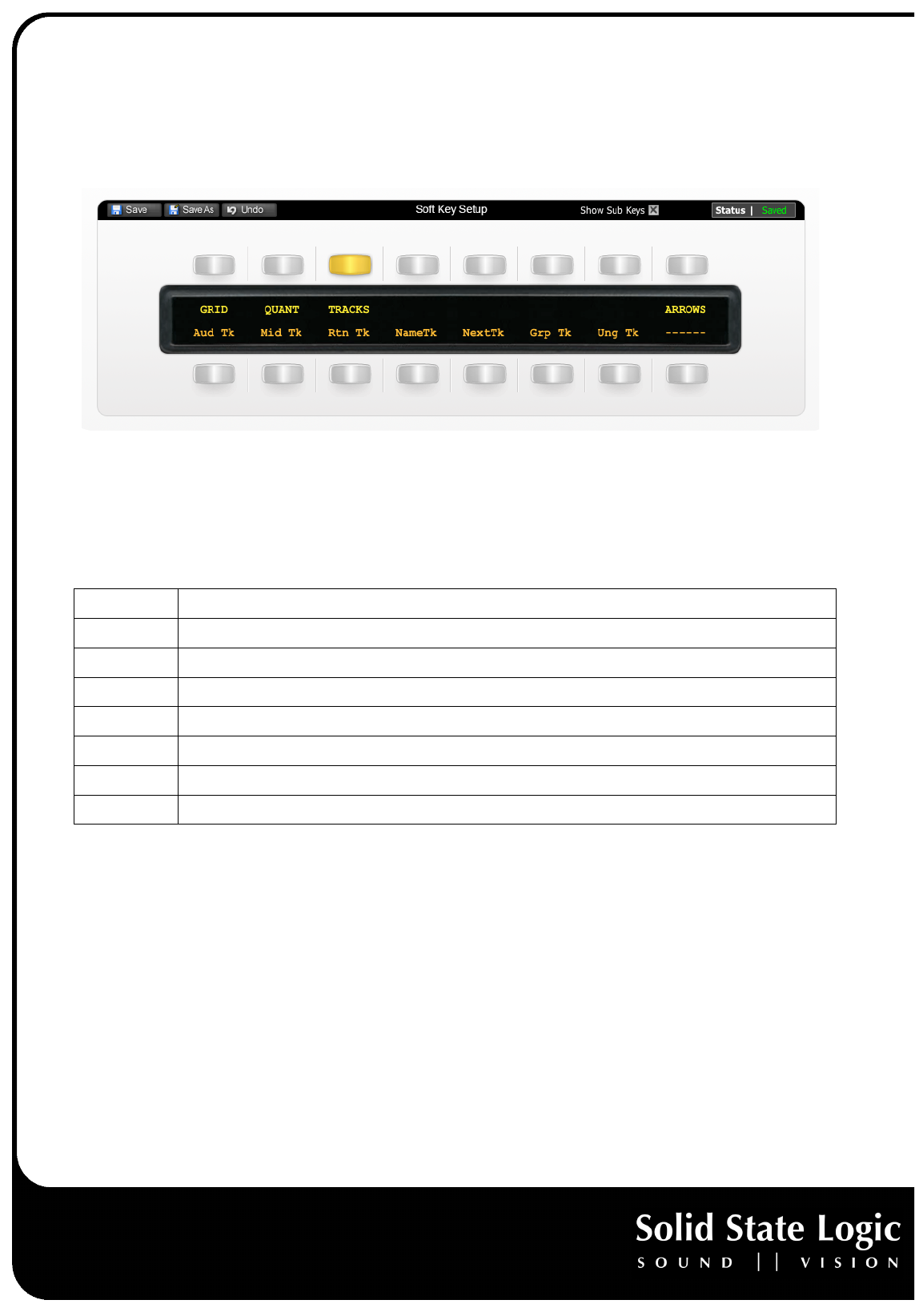 The image above shows the assignments for the TRACKS Submenu Key Set – Press the