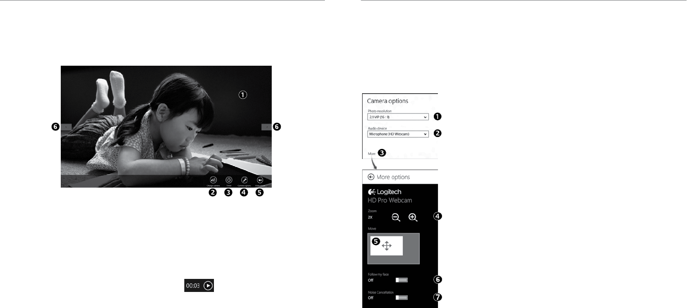 Use the Camera app, available from the Windows 8 Start screen, to operate and control
