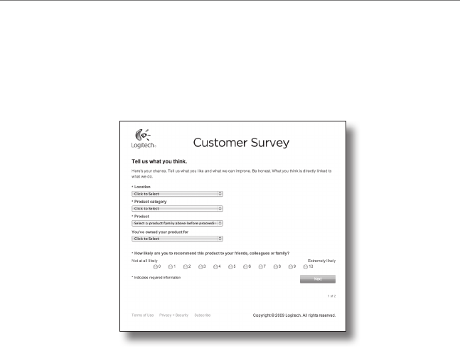 * O exemplo de Pesquisa sobre o cliente mostrado aqui é em inglês. A Logitech oferece suporte a vários idiomas neste site.