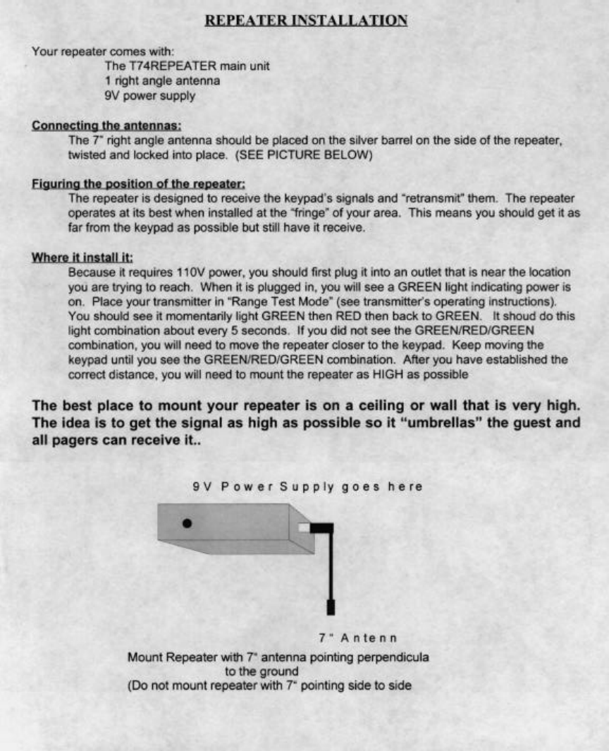 Long Range Solutions T74REP On Site Pager User Manual Userm