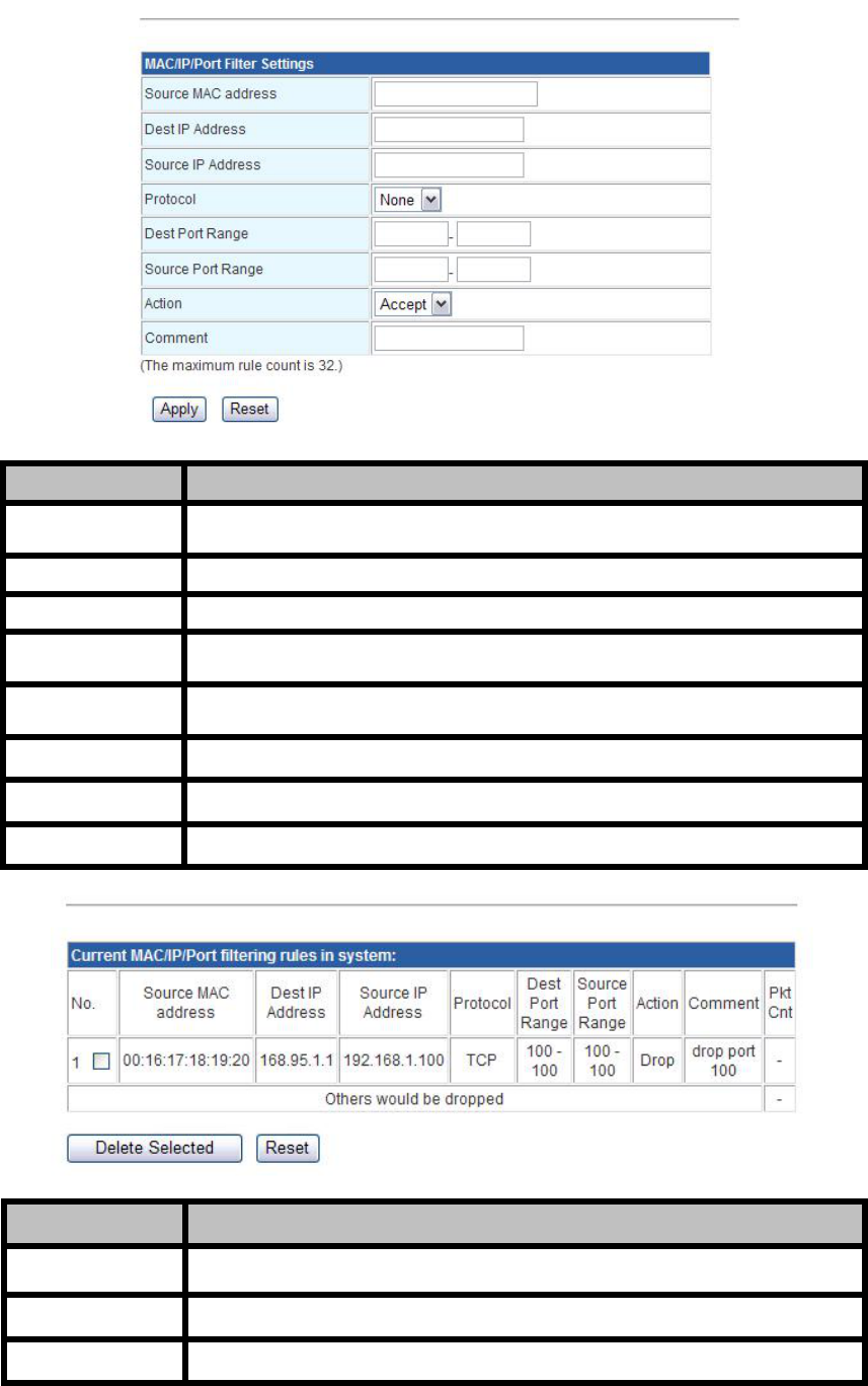 4.3.5.1 MAC/IP/Port Filtering .......................................................... 43