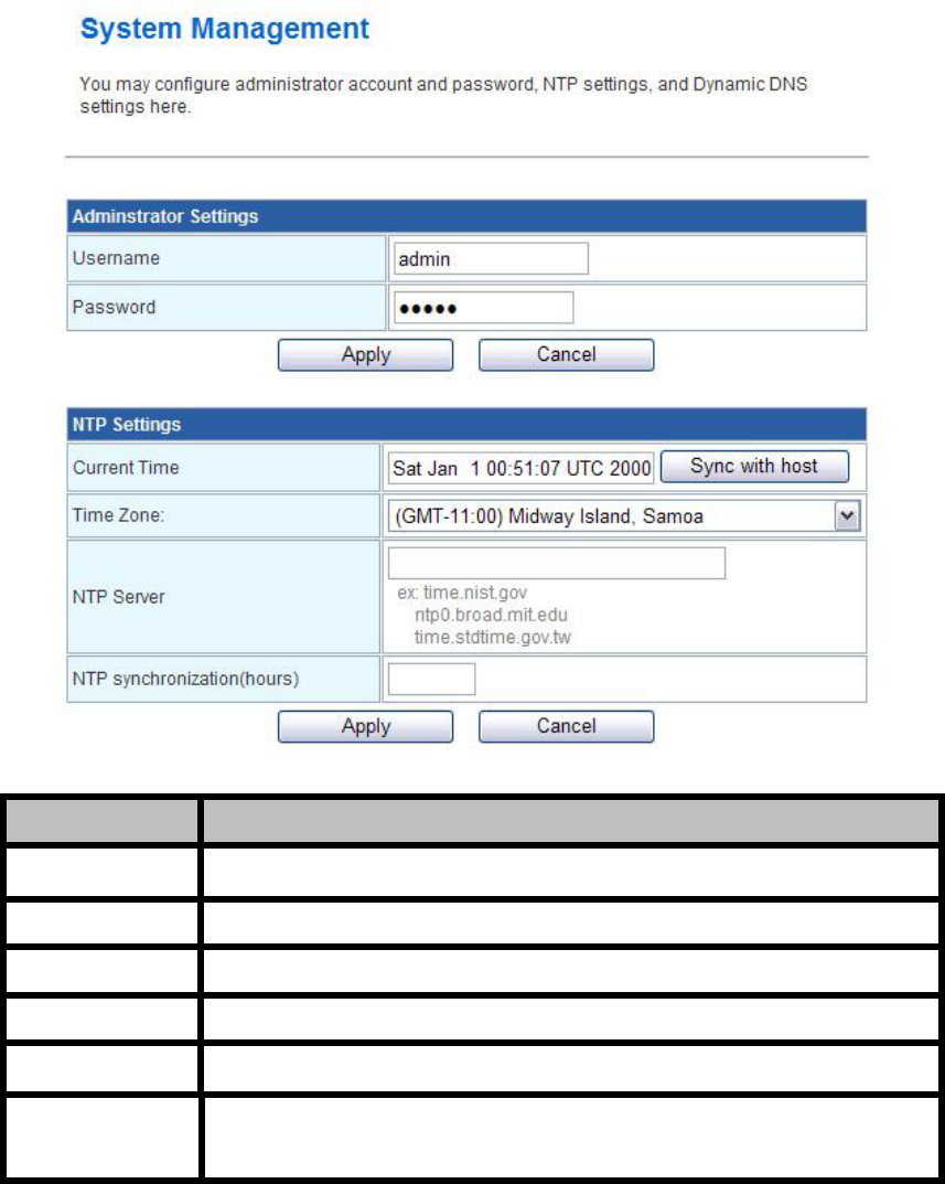 User can specify time zone, NTP server IP address.