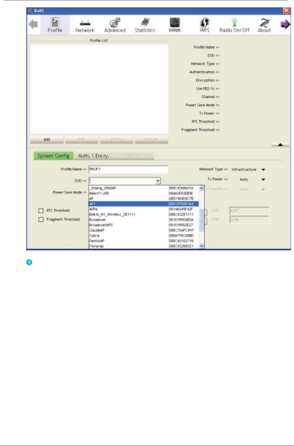 entered for the network. In Infrastructure mode, make sure the same Service Set Identifier (SSID) is