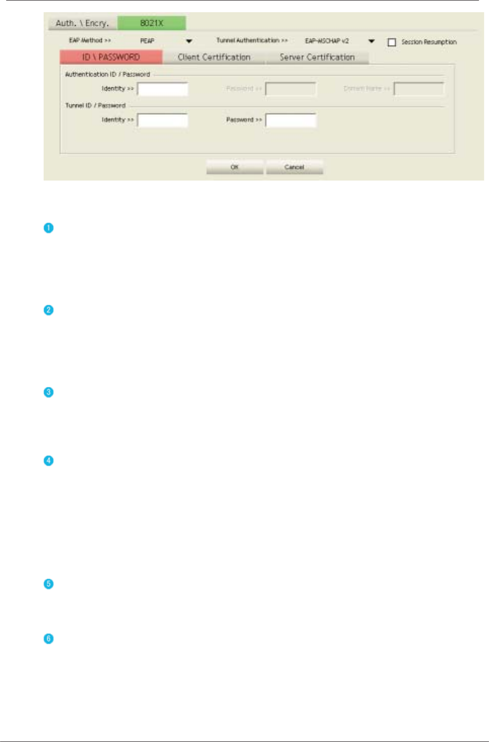 1. Select TTLS from the Authentication type drop-down list. Key-in the identity as