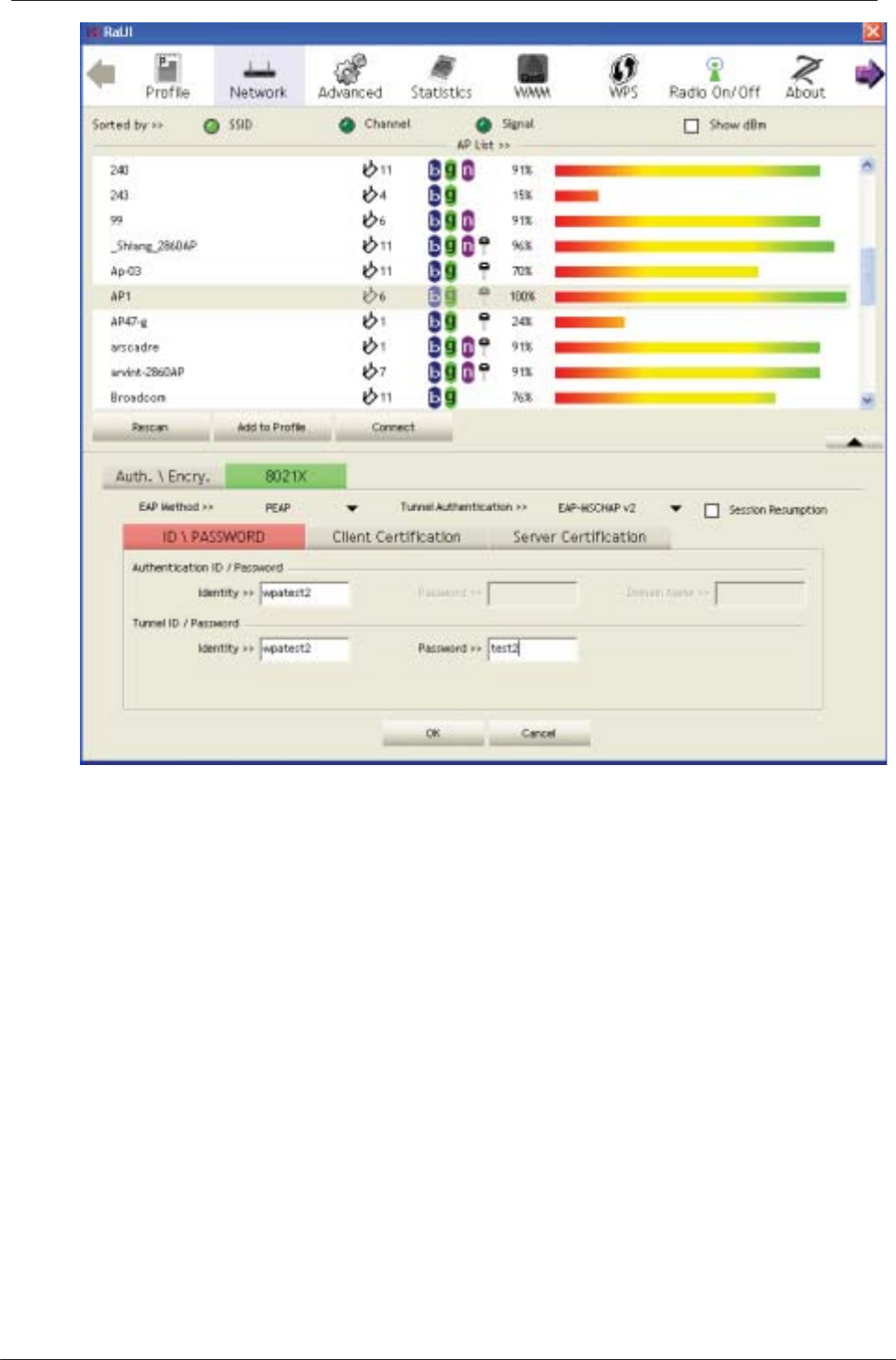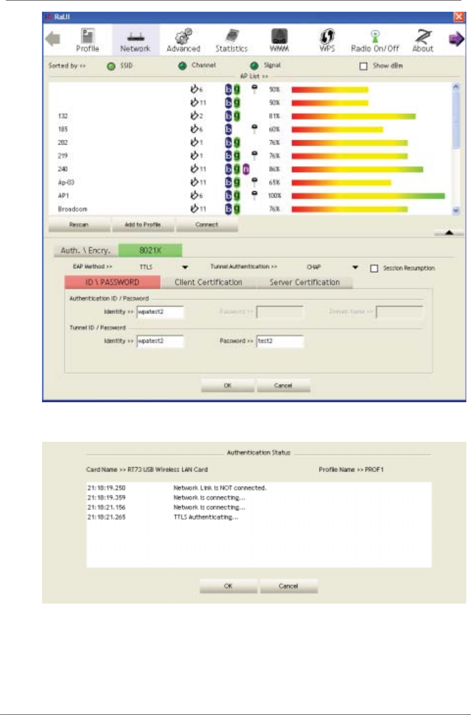 "wpatest2" and tunnel password as "test2". These settings are the same as our