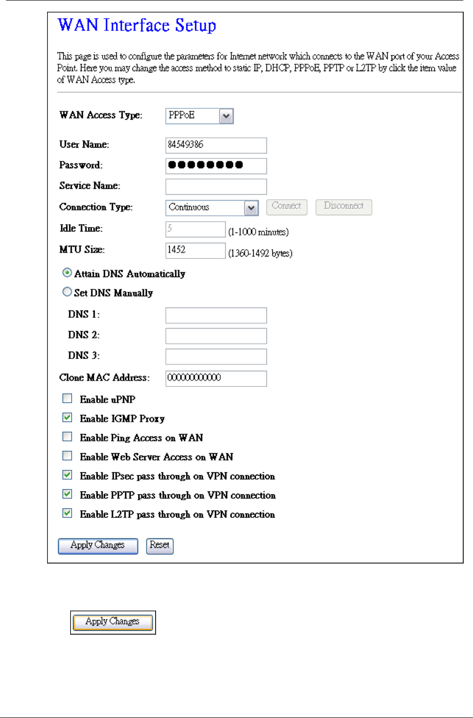 Open WAN Interface Setup page, select PPPoE then enter the User Name “84549386” and