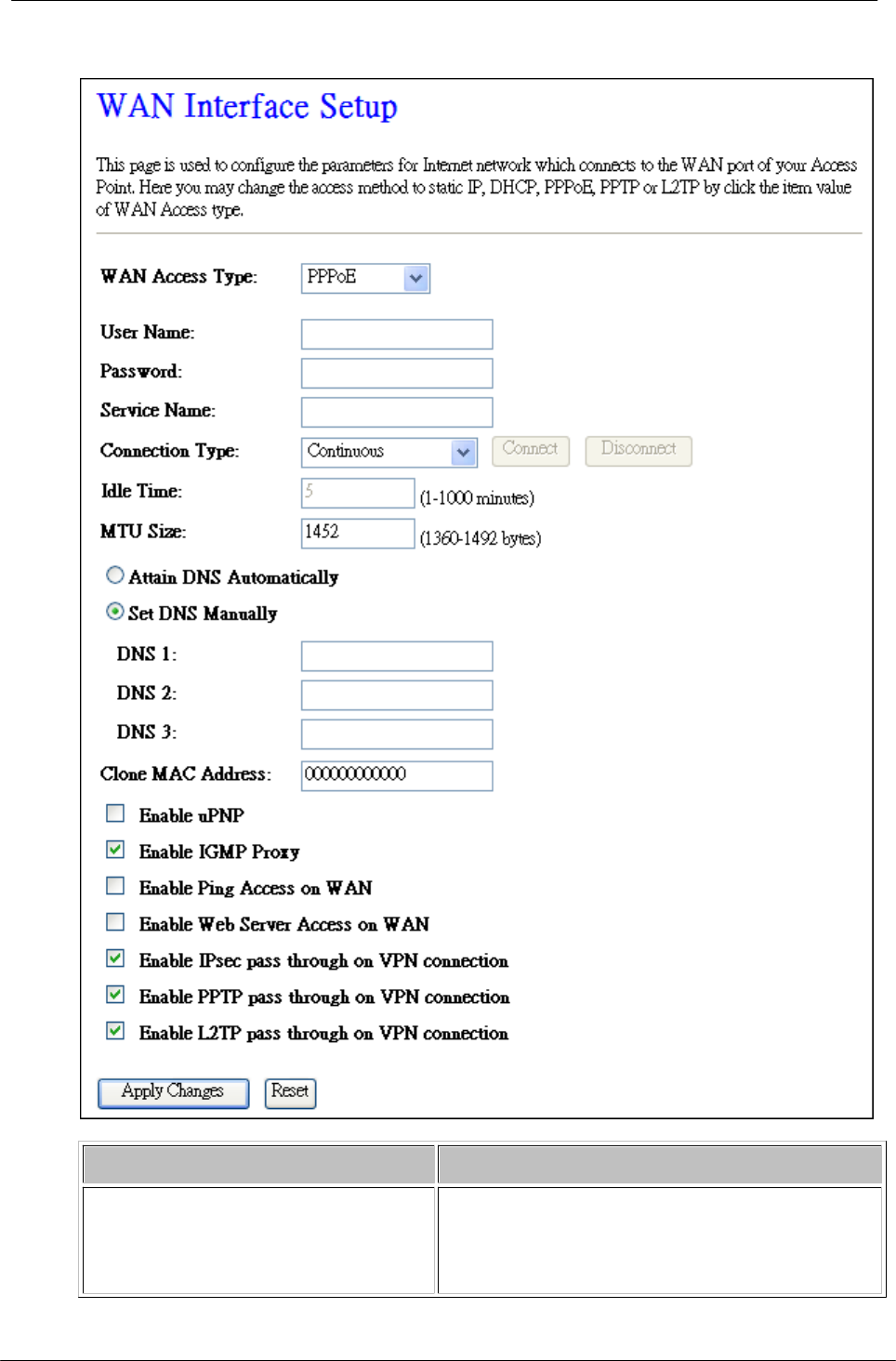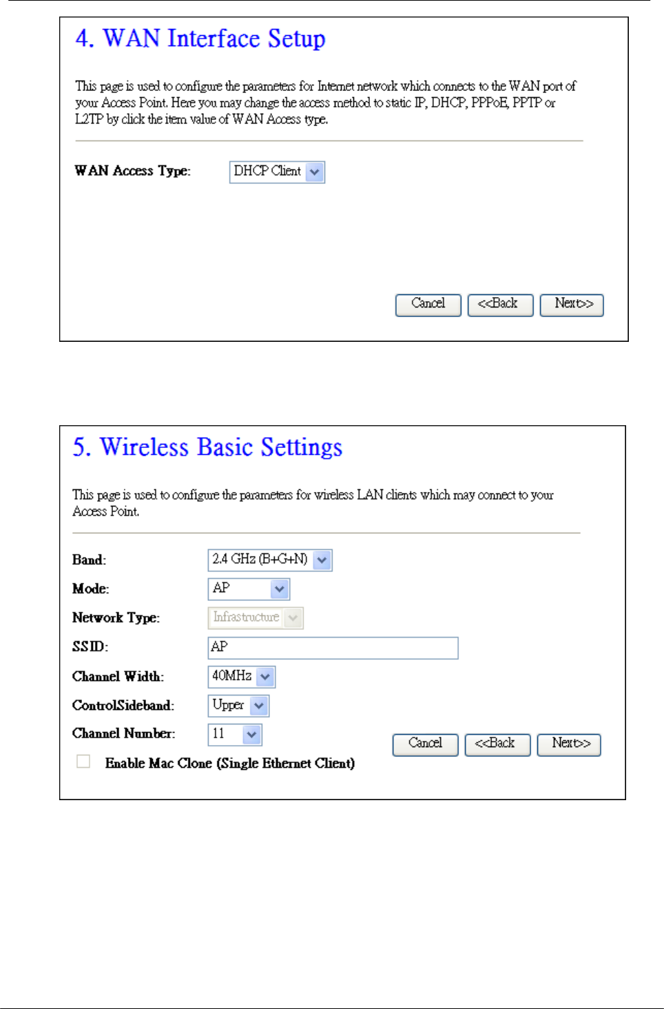 Open WLAN Interface Setup page, enter the SSID “AP”, Channel Number “11”.