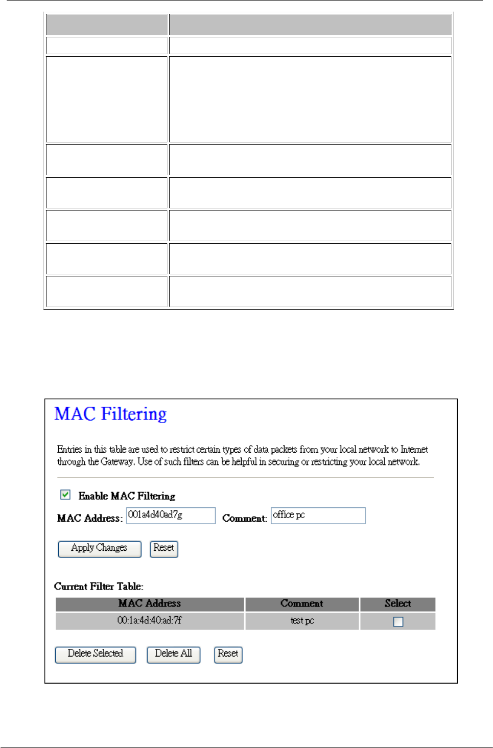 ......................................................................................................................................................... 433.15 Firew all - MAC Filtering