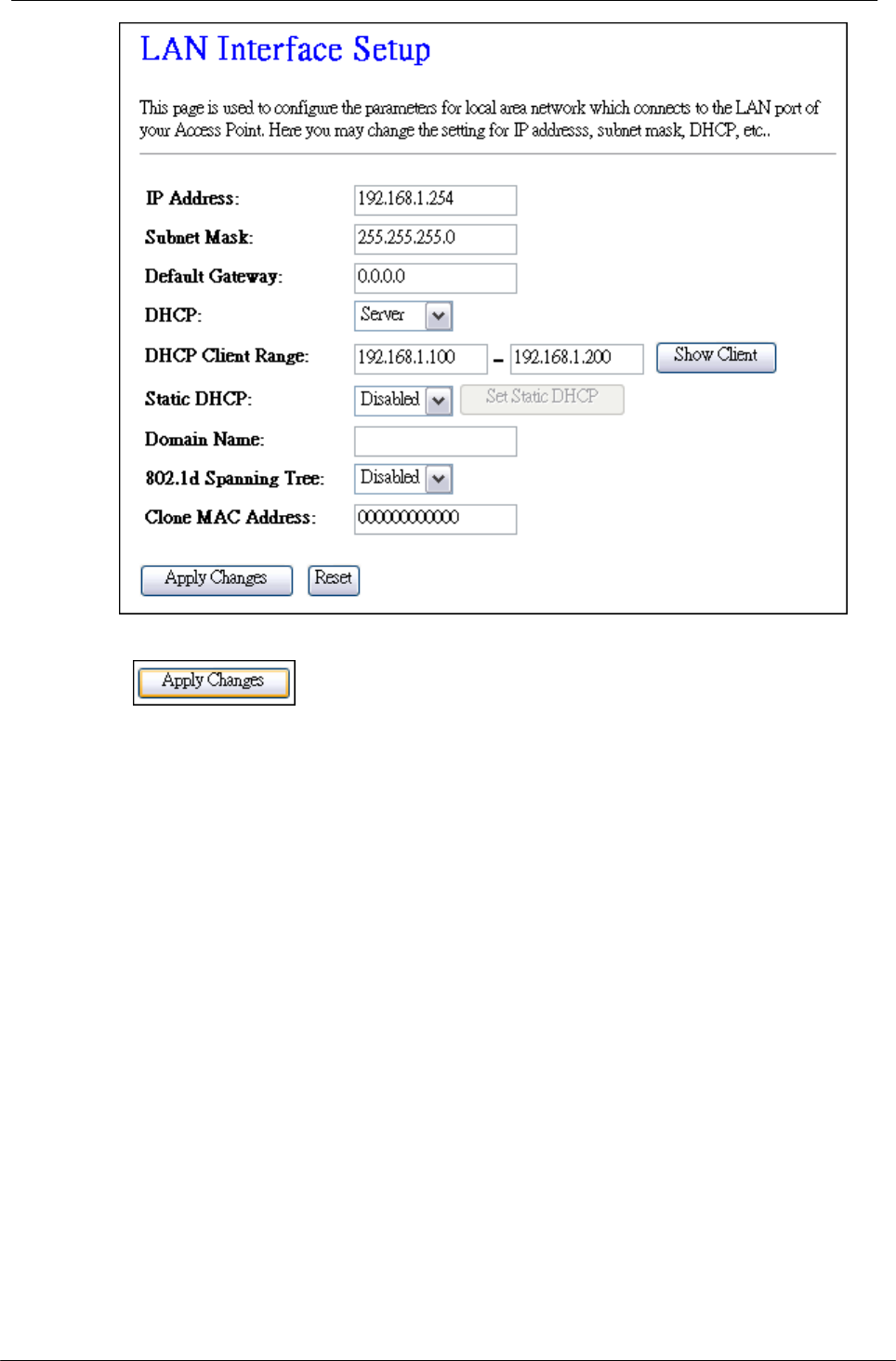 Open LAN Interface Setup page, enter the IP Address “192.168.1.254”, Subnet Mask