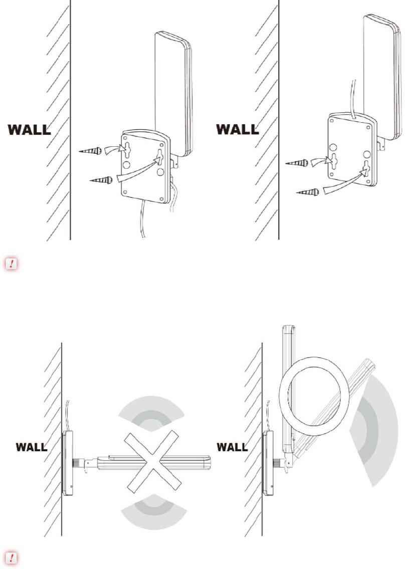 diagram below; therefore the antenna can be hanged onto the wall with both the screws.