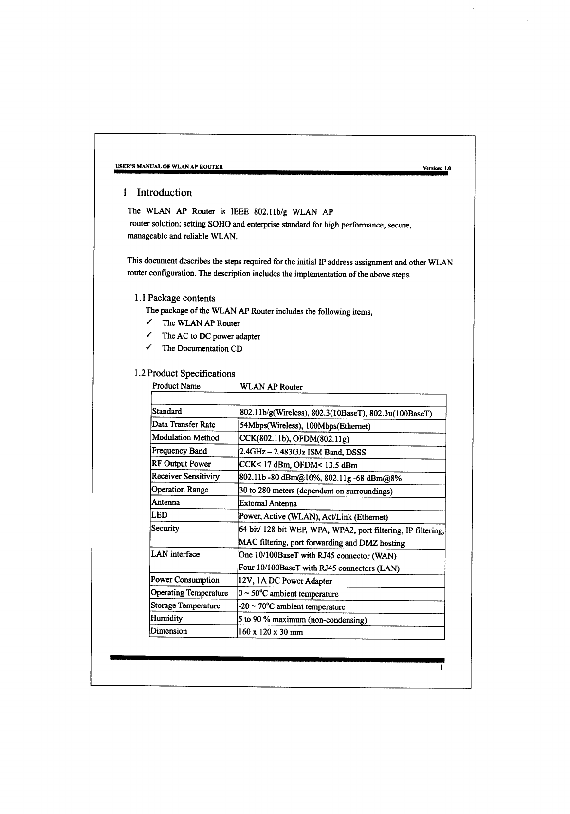 Loopcomm Technology LP-9186-001 Wireless AP Router IEEE 802.11b/g User Manual