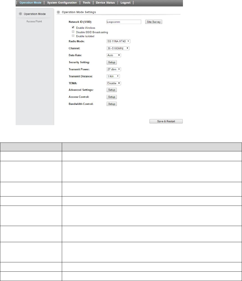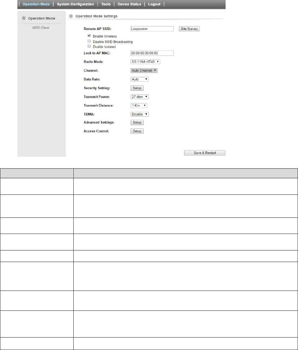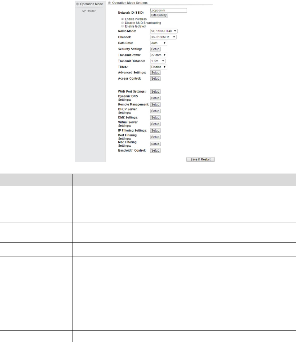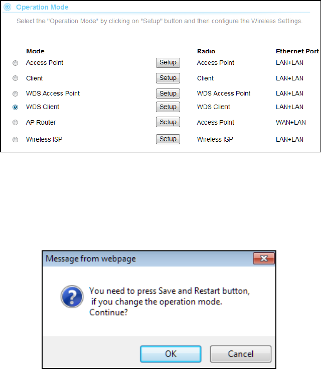 Operation Mode: Access Point/Client/WDS Access Point/WDS Client/AP Router/Wireless ISP