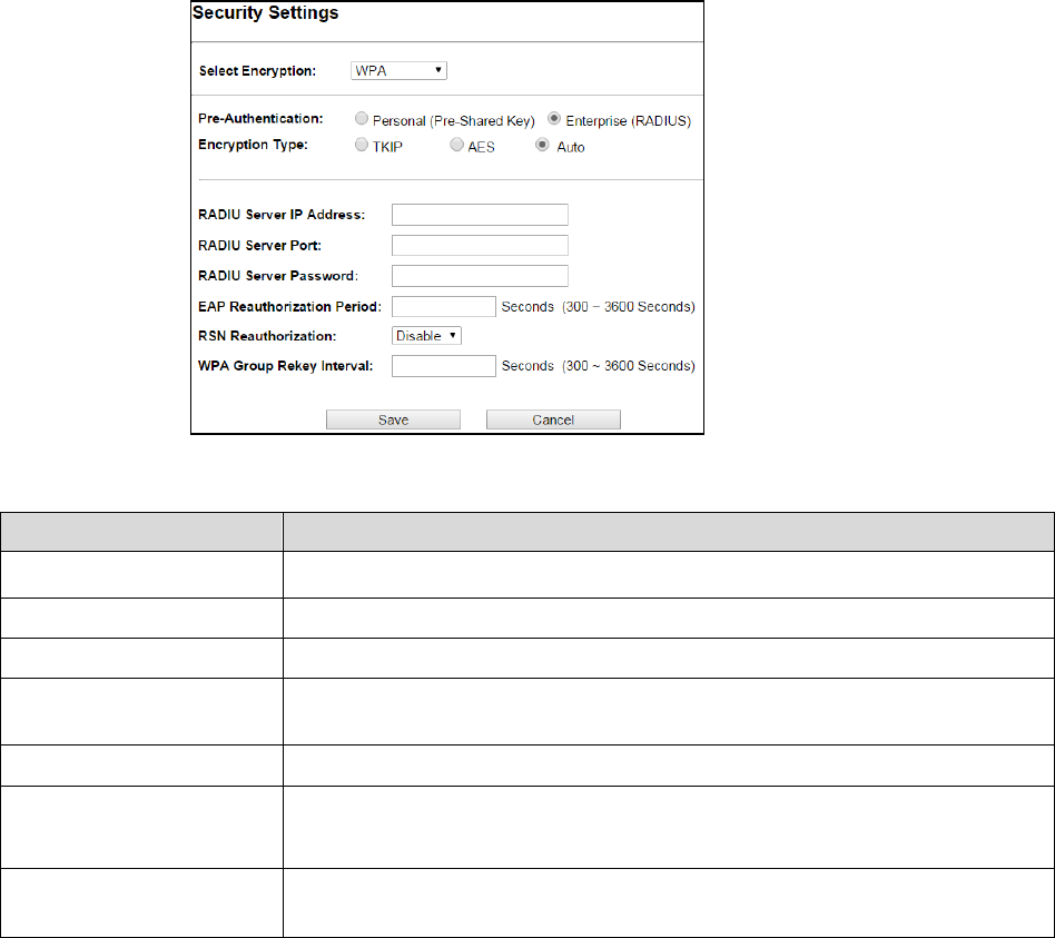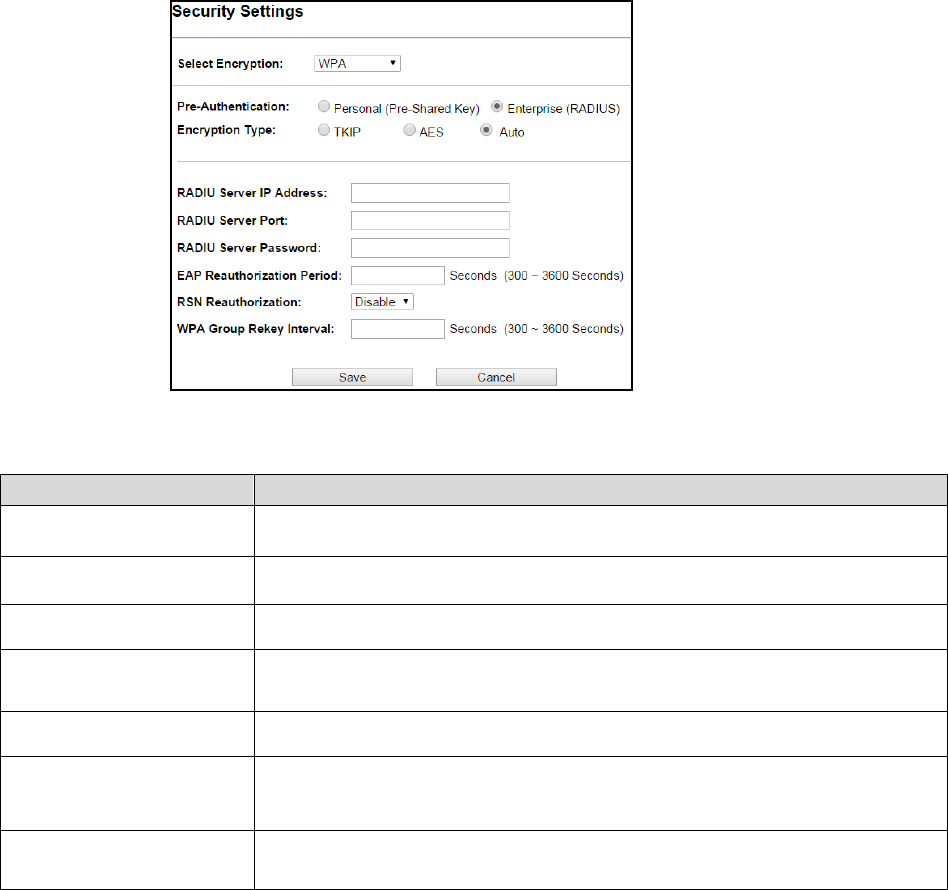 Reliable data security including WEP, WPA/WPA2, WPA-PSK/RADIUS, and WPA2-PSK/RADIUS