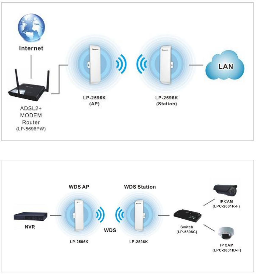 Loopcomm LP-2596K is an Outdoor Long Range 5GHz Wireless AP/CPE/Bridge that provides