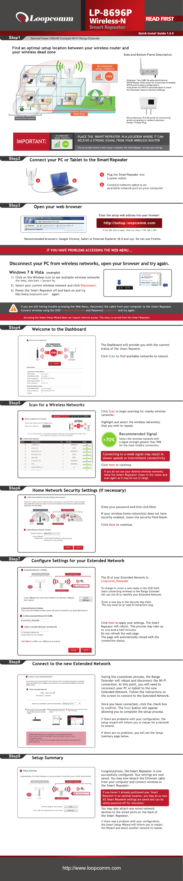 Loopcomm Technology LP8696P 802.11 b/g/n 2.4G Indoor Wireless Smart Repeater (2T2R) User Manual part 1 of 2
