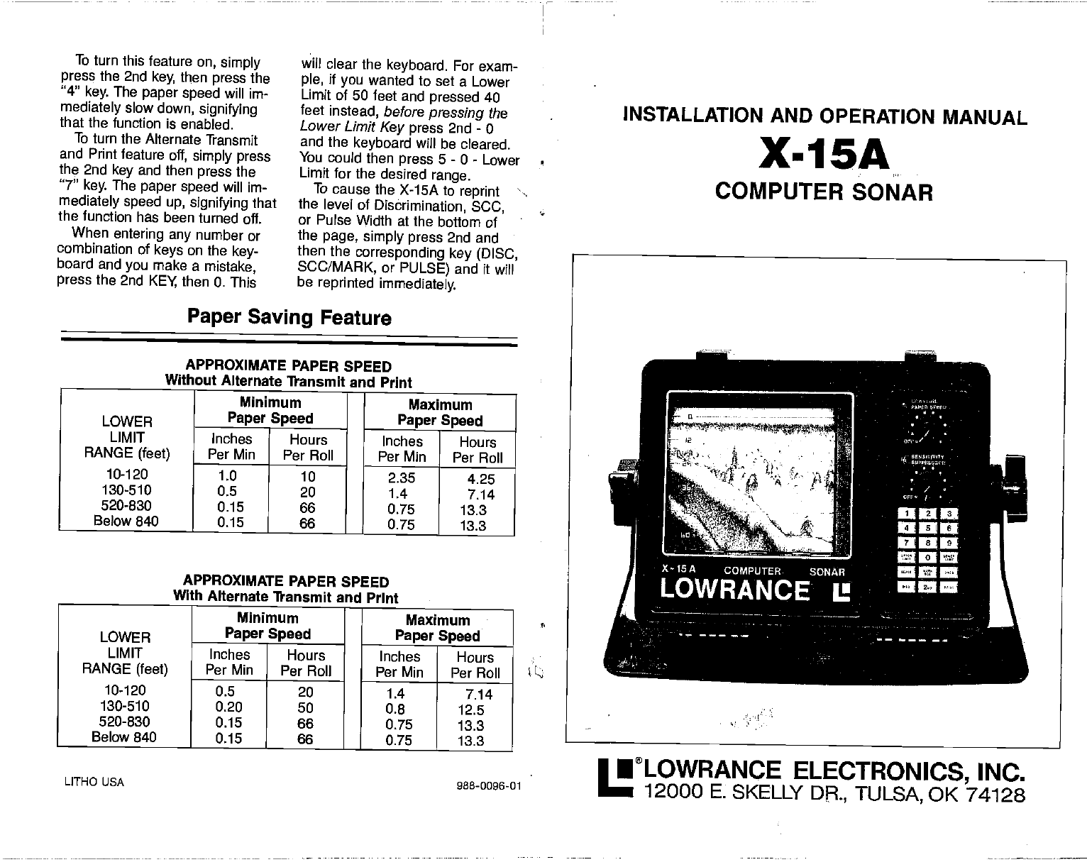 Lowrance Electronic X 15A Users Manual