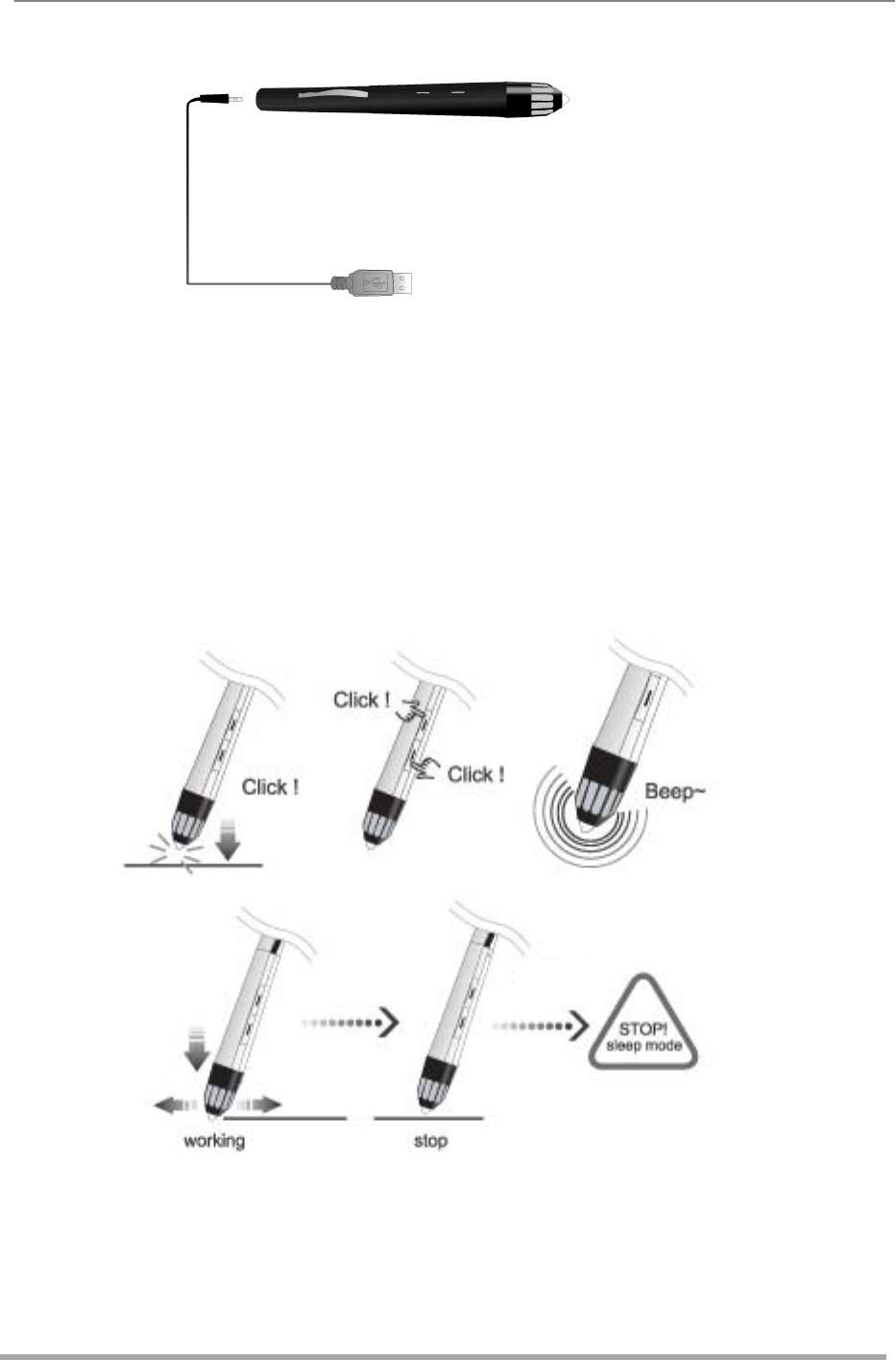 In order to recharge digital pen safely, please use recharging cable enclosed in the package.