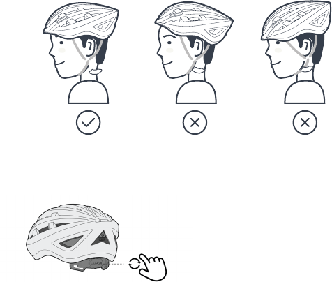 fastened, make sure the helmet cannot be removed from your head or rolled back-