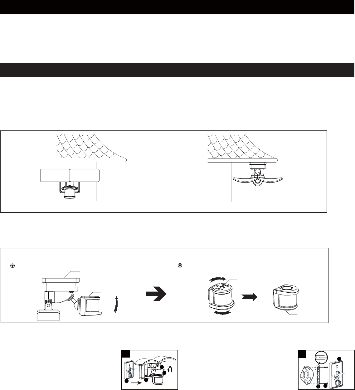 Before installing the light fixture under an eave, the sensor head must be rotated as shown in the next two steps for
