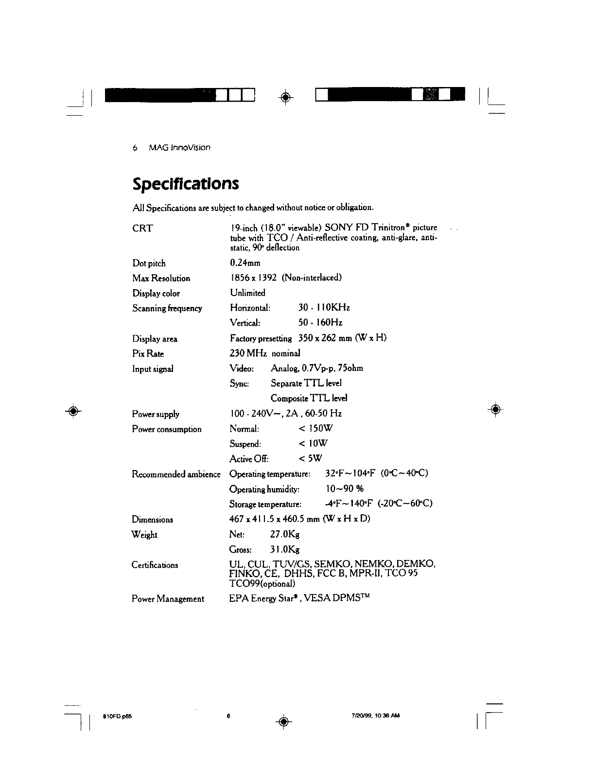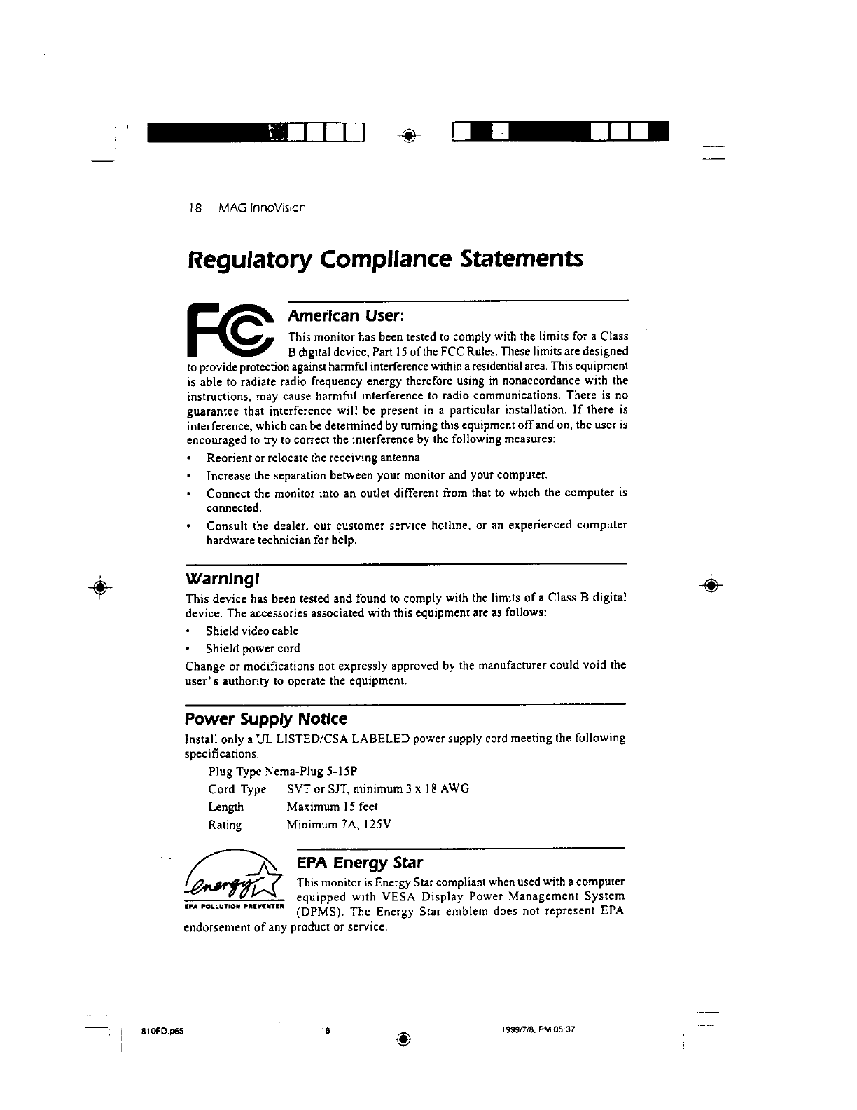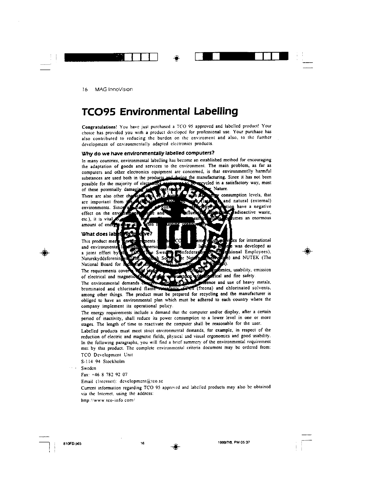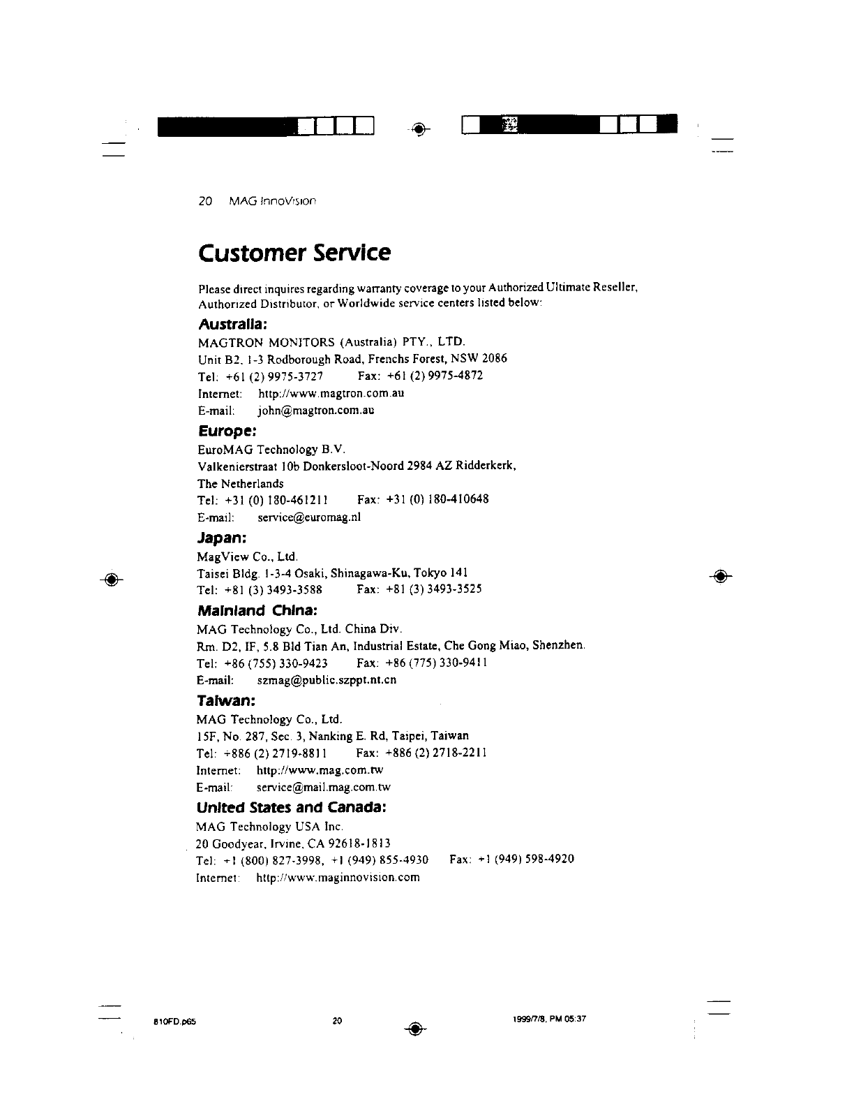 MAG Technology Co U8T011 Color Monitor User Manual 65732