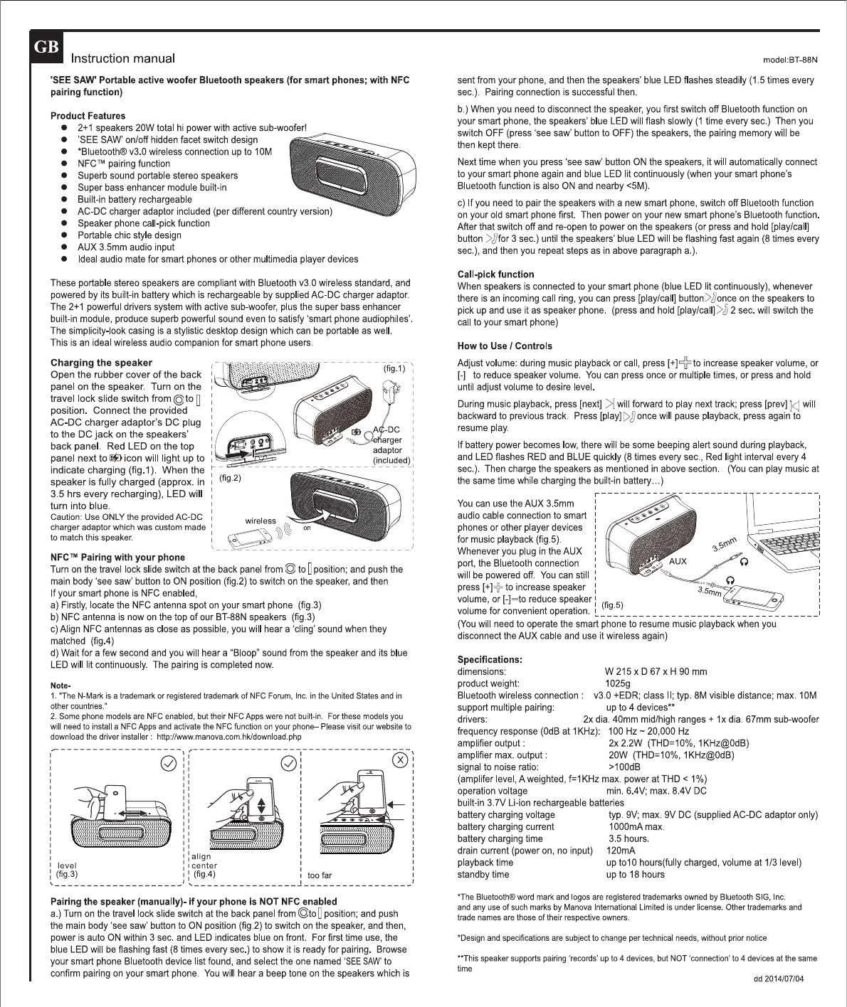 MANOVA MANOVABT88N SEESAW - Bluetooth stereo Speaker User Manual BT 88N manual English