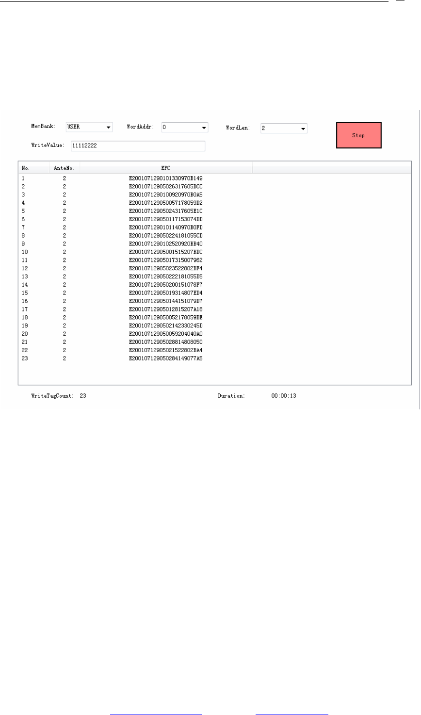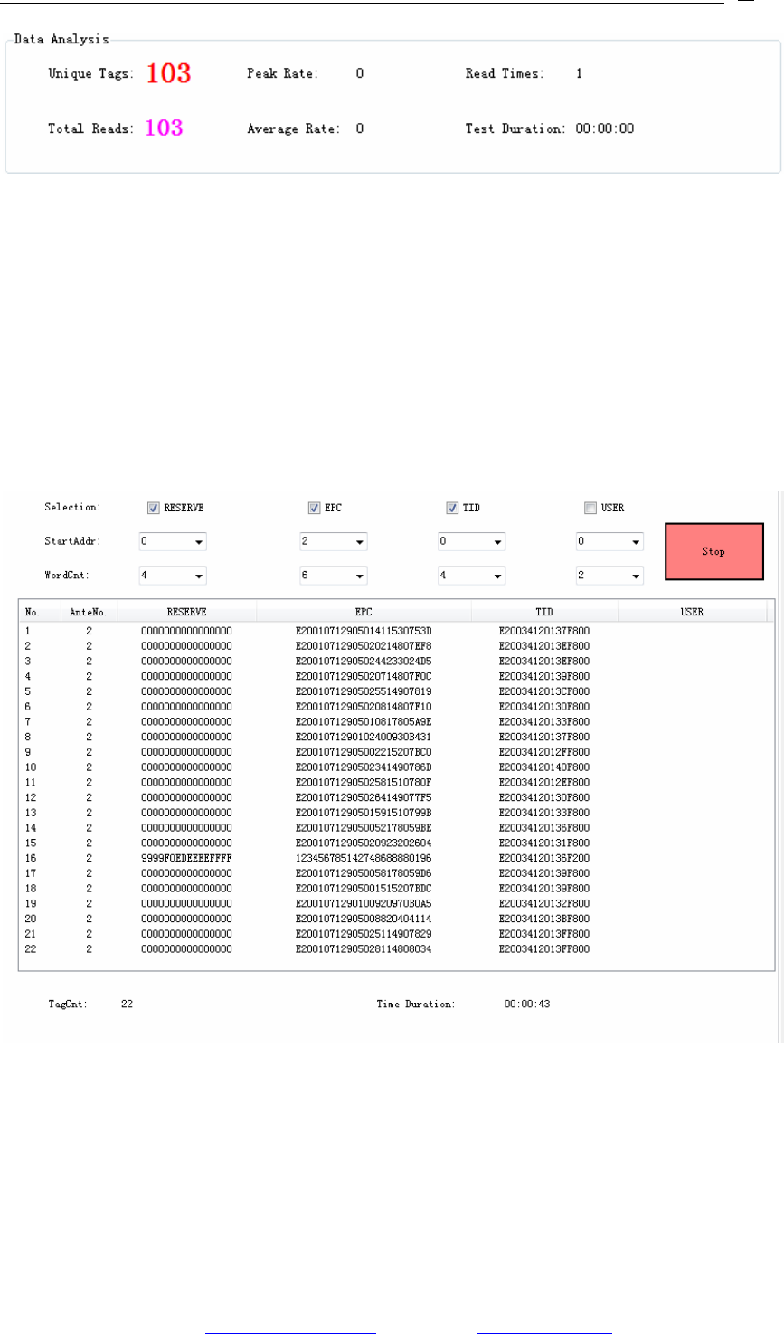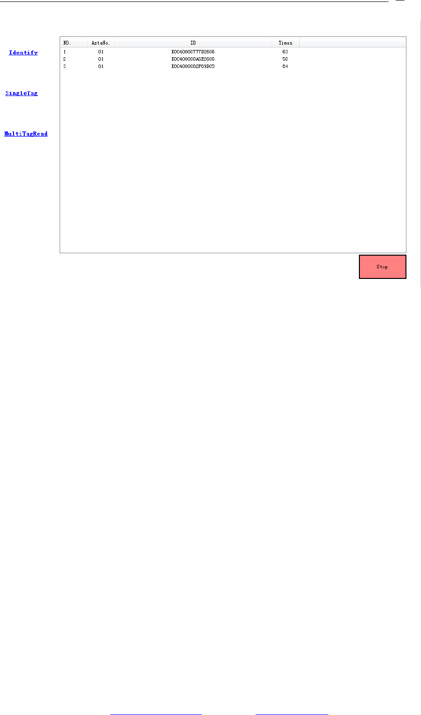 UID code, Antenna No., and the read times. Click ‘Stop’ ICON for stoping the