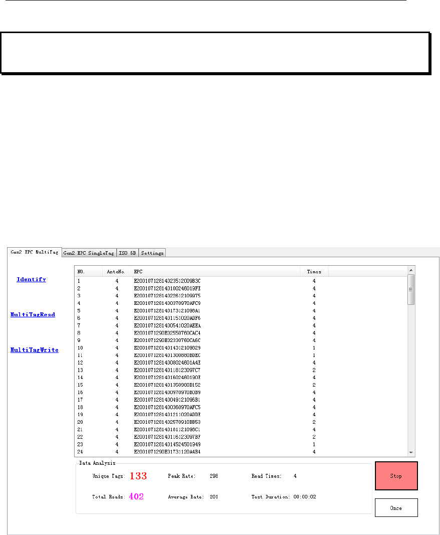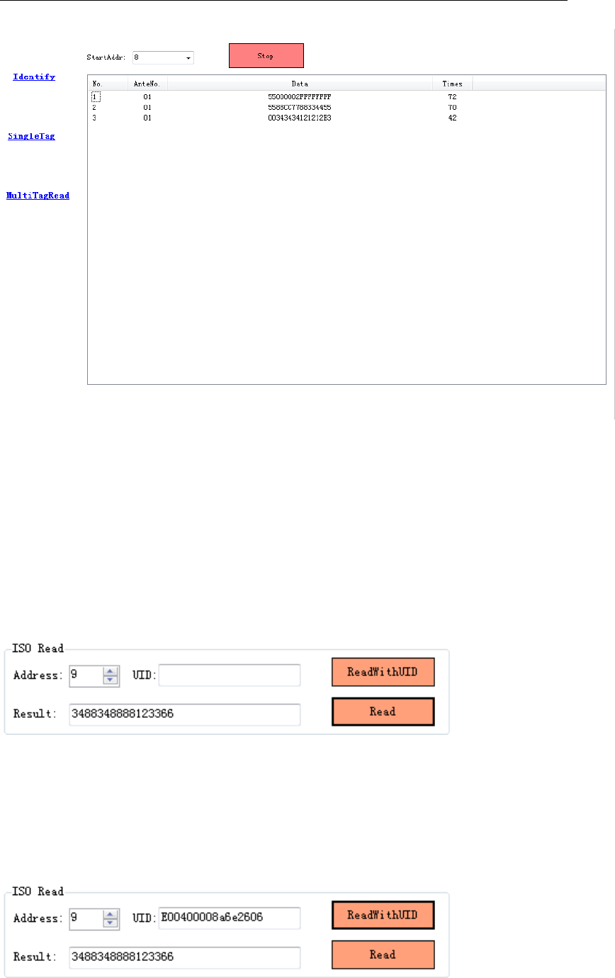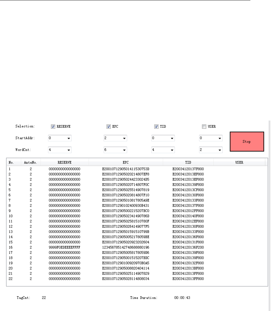 UID code, Antenna No., and the read times. Click ‘Stop’ ICON for stoping the