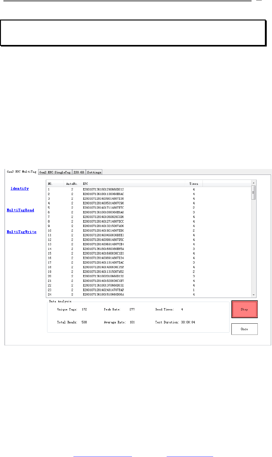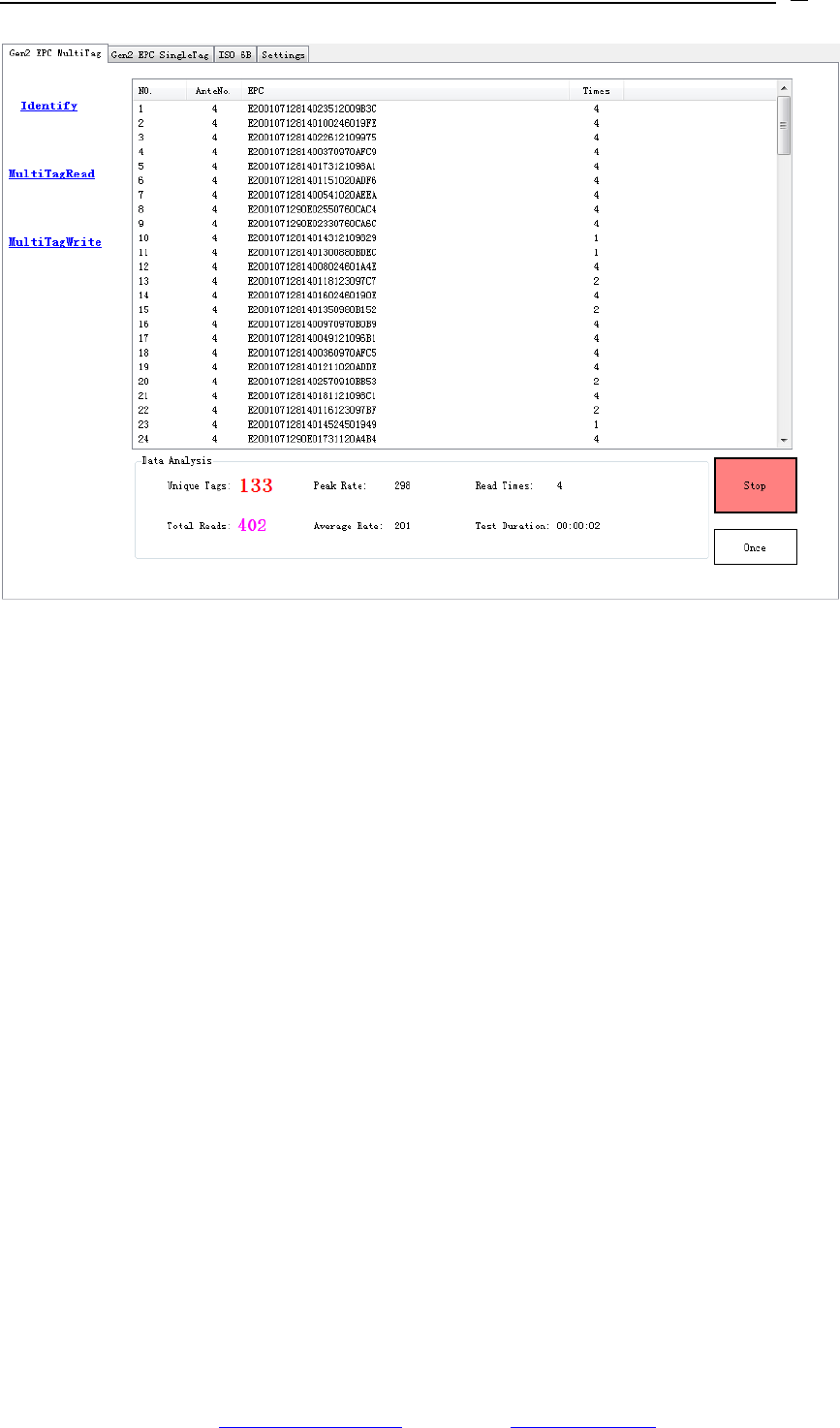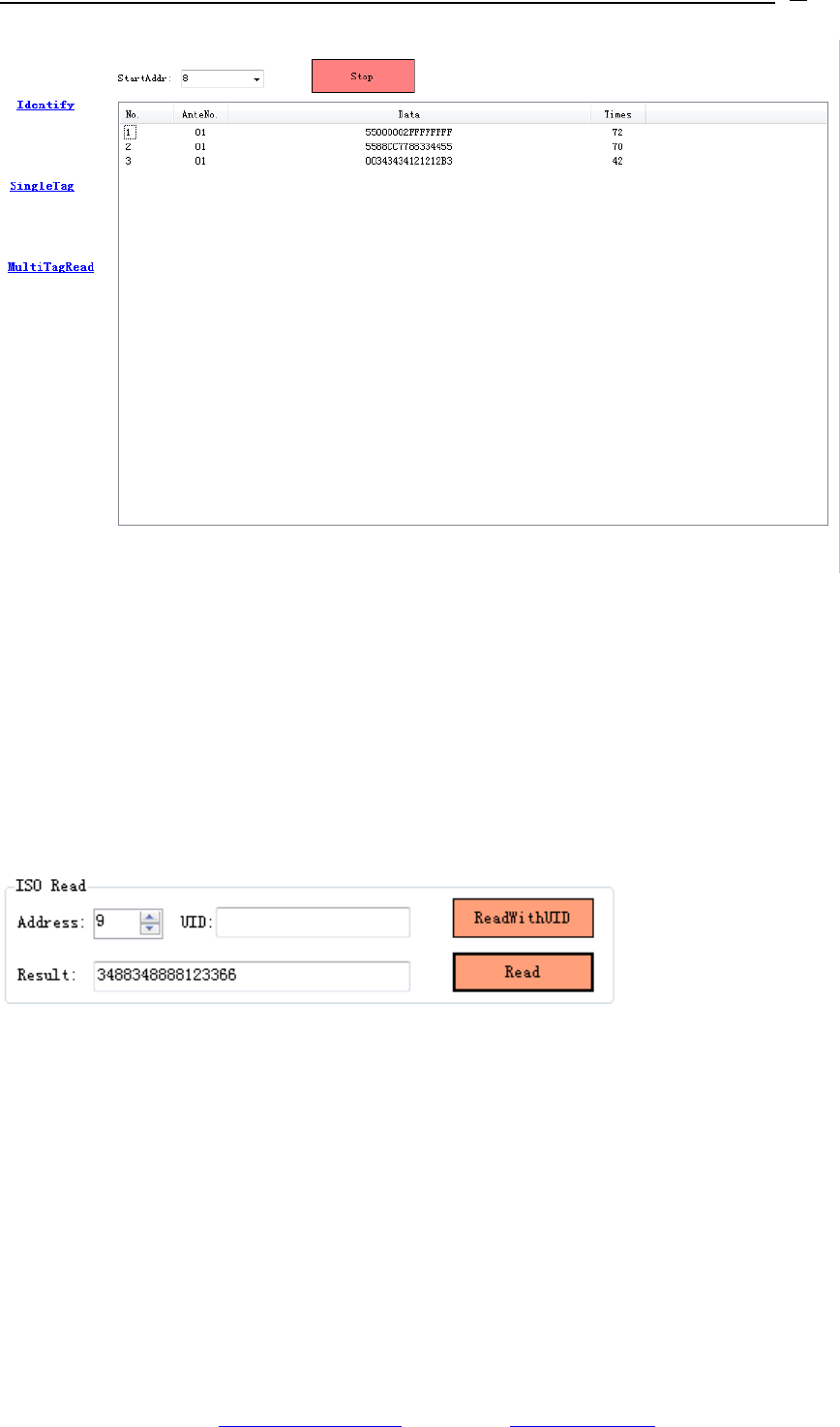 UID code, Antenna No., and the read times. Click ‘Stop’ ICON for stoping the