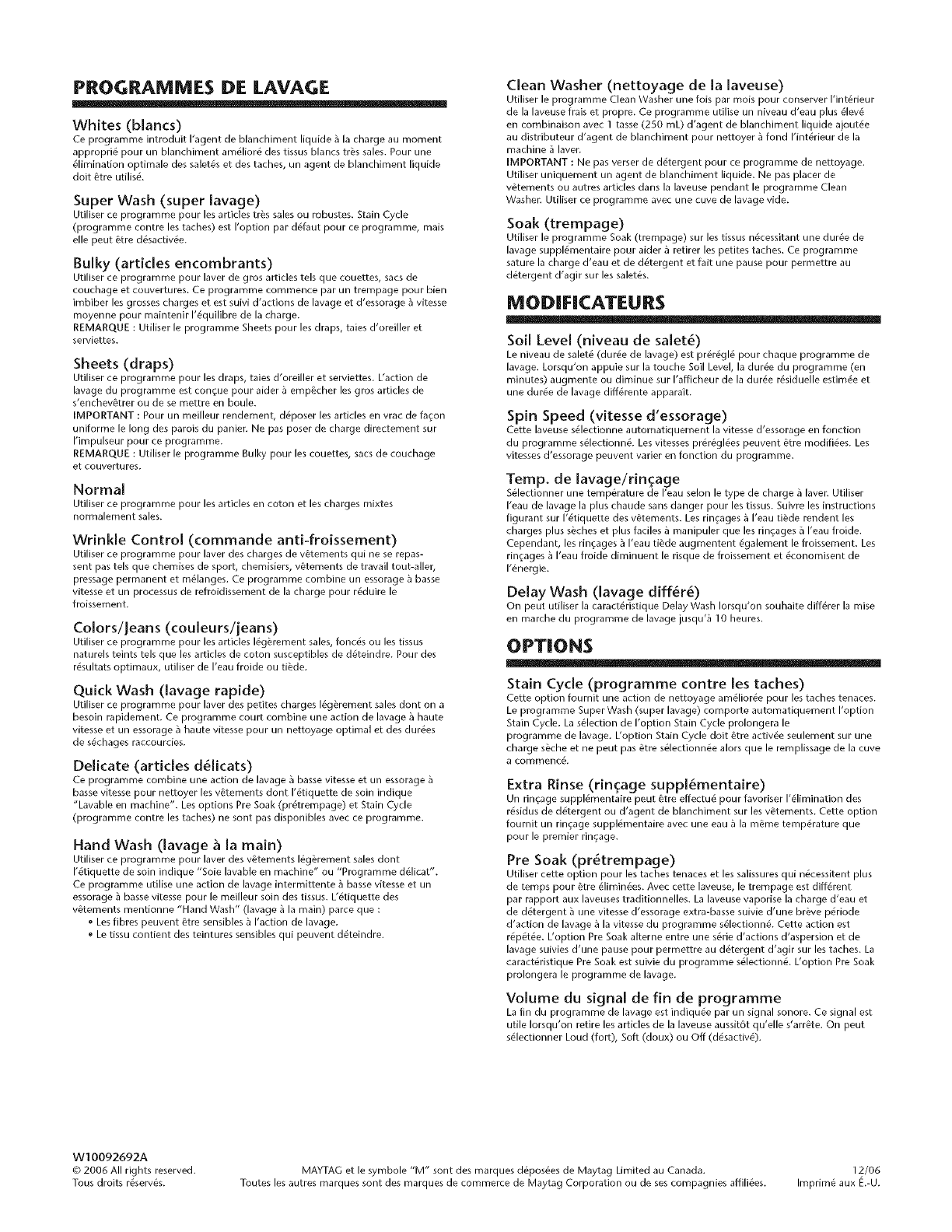 © 2006 All rights reserved. MAYTAG et le symbole "M" sont des marques d_pos_es de Maytag Limited au Canada. 12/06