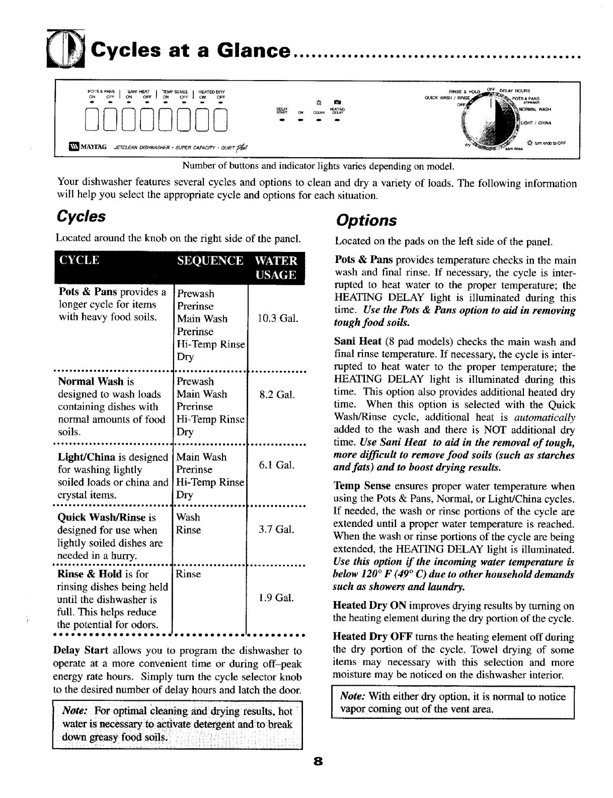 • A Quick Wash/Rinse cycle does not dry the dishes. Towel drying is required.