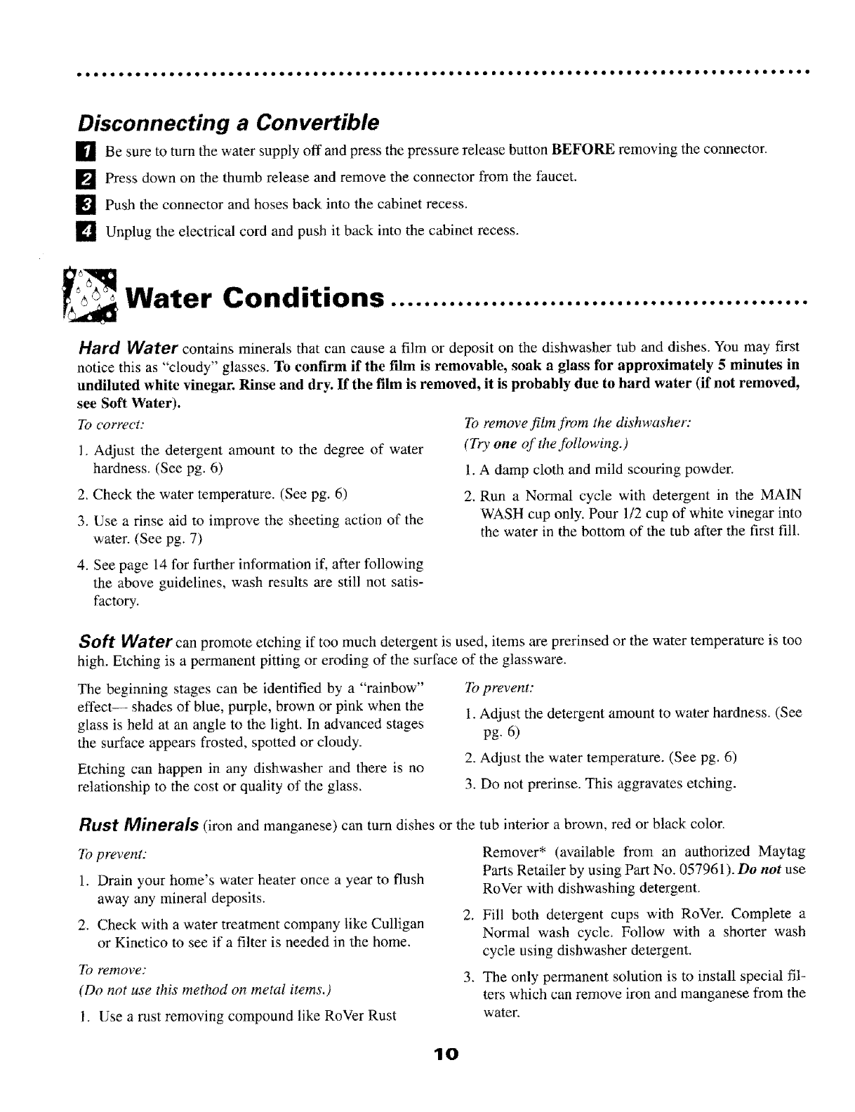 Items Washed in the Dishwasher ° Iron in the water can leave a yellow, brown or orange film on dishes or the dish-