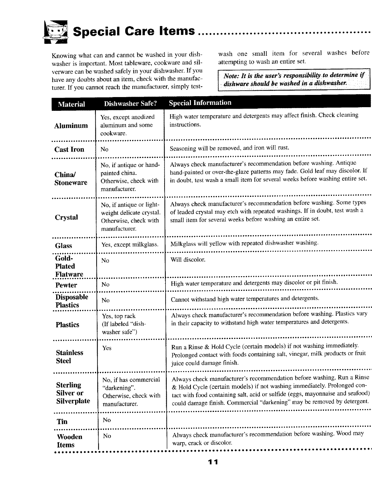 Special Care Items .............................. 11