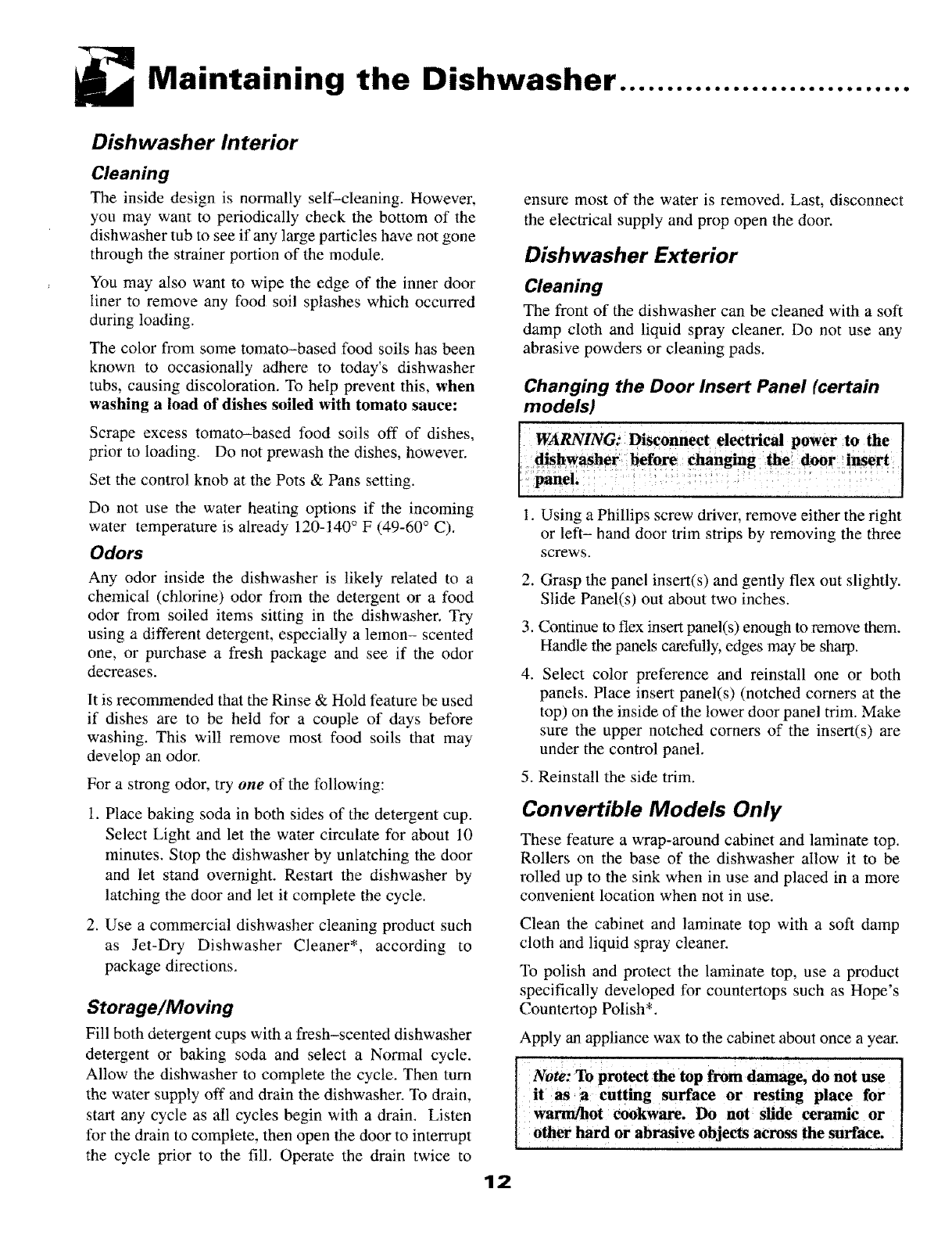 Maintaining the Dishwasher ............ 12