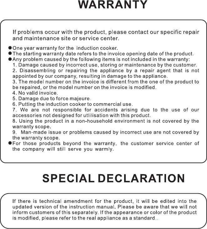 Note: never immerse the induction cooker in the water and do not maintain it with