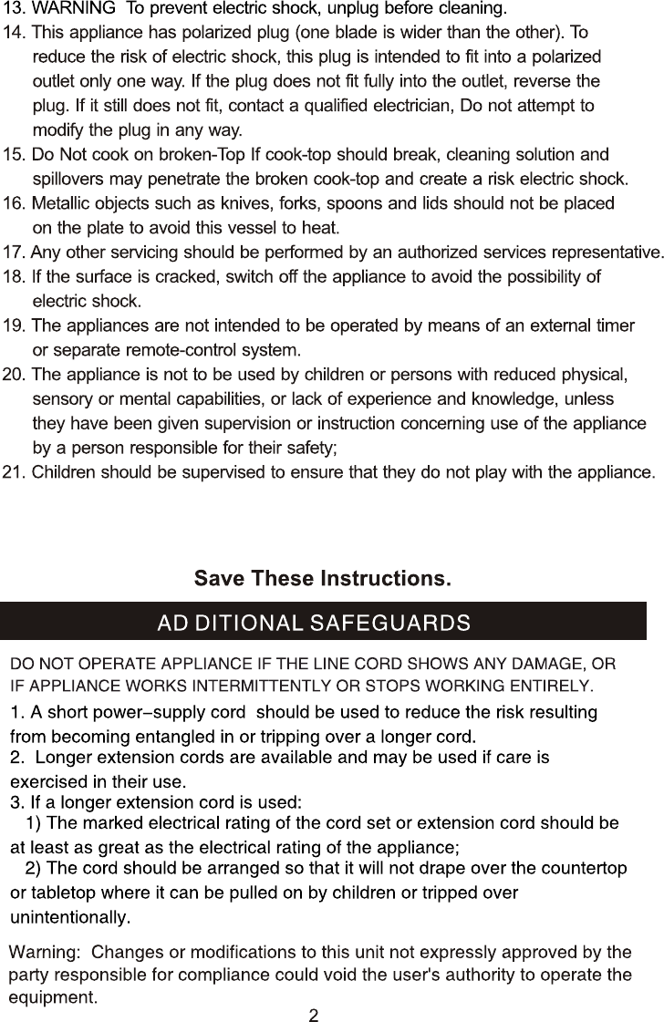 6. Do not operate any appliance with a damaged cord or plug or after the