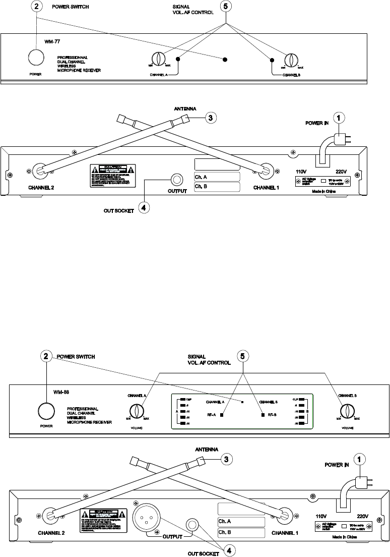 5. Do not open the Microphone Receiver to avoid being electrocuted. Allow only