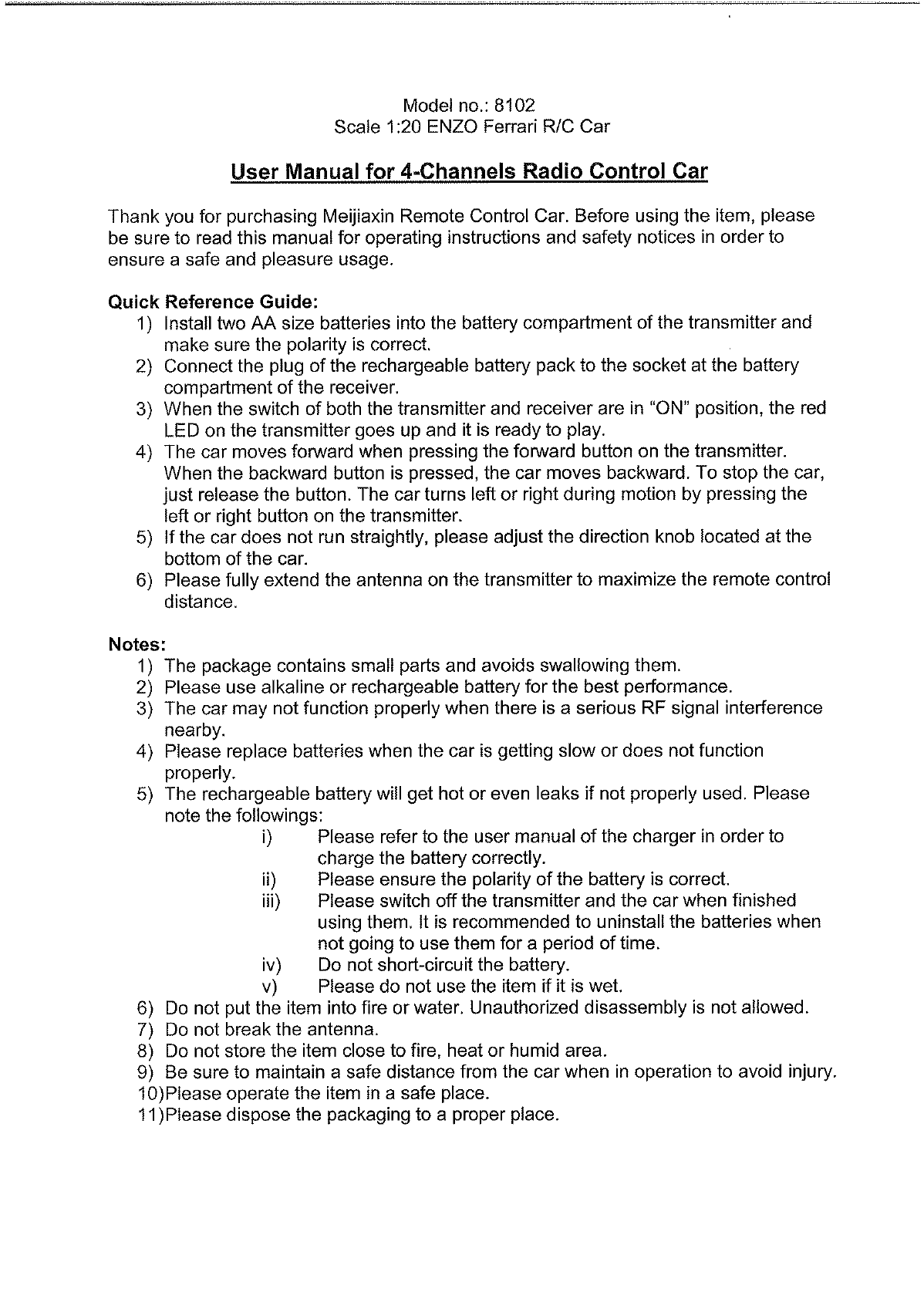 MEIJIAXIN TOYS 8102A RC Car User Manual