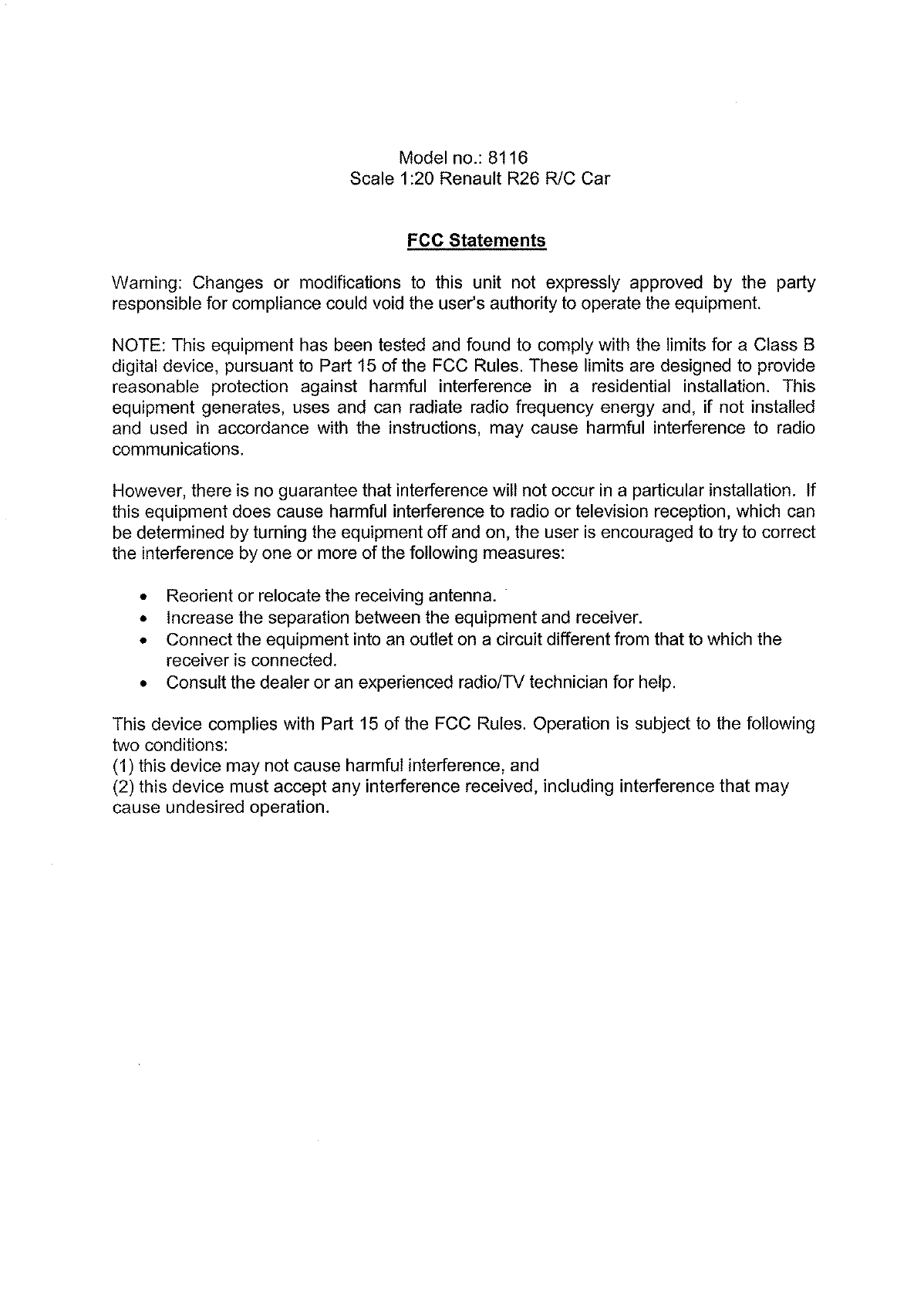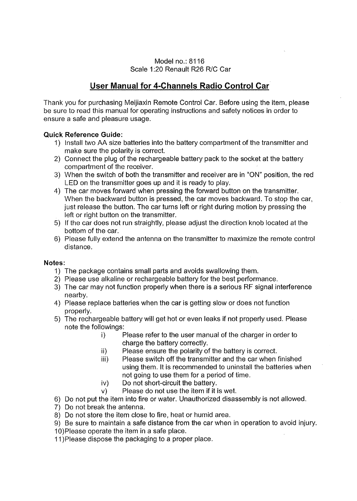 MEIJIAXIN TOYS 8116BRX RC Car User Manual