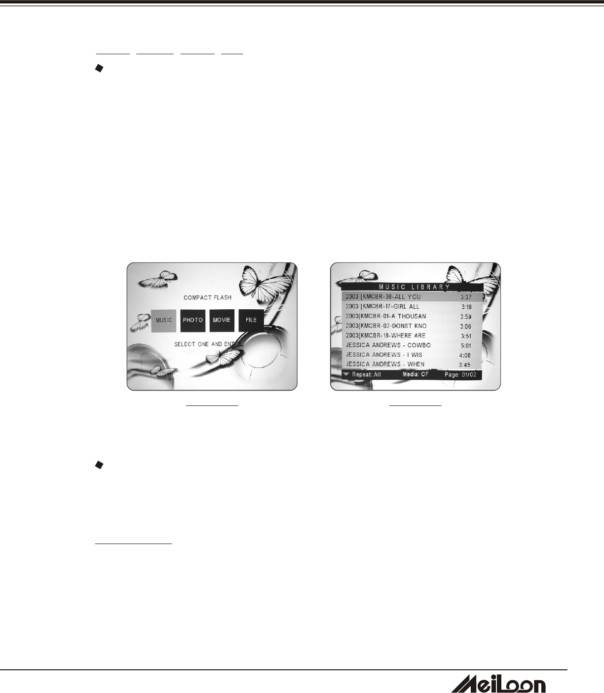 1. Press the "Right" or "Left" button to choose the "MUSIC" folder.(Drawing 20)